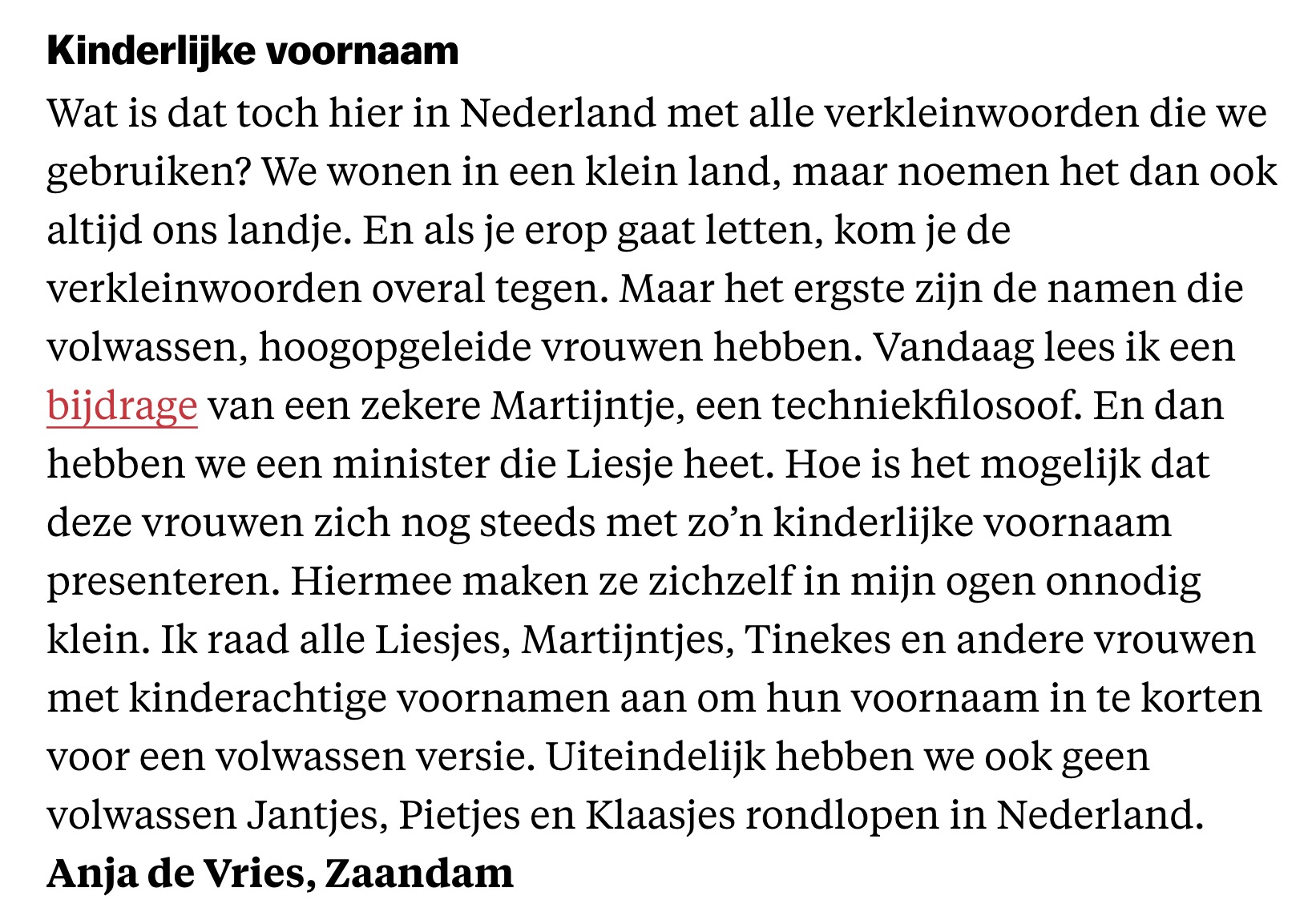 De naam: Hans Wijmer. De rol: denker des vaderlands. De kwaliteit: oplossingen zien, waar anderen zich alleen maar richten op problemen. De situatie: er is gedoe met de post. De actie: een brief (of e-mail, red.) sturen aan De Telegraaf. Het resultaat: het probleem is opgelost. Het gevolg: mensen, die eerst een brief stuurden, sturen nu e-mails, op elke plek ter wereld, razendsnel. Het volk: is Hans Wijmer eeuwig dankbaar.