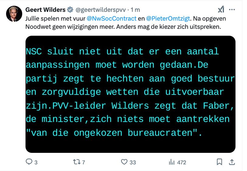 Er wordt aan de T gelekt over disfunctionele PVV-bewindslieden, dus het zal wel weer uit de VVD-hoek komen