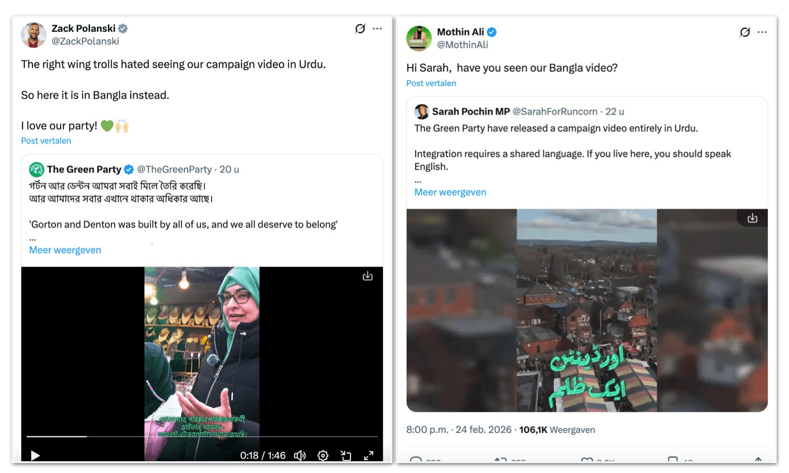 Britse GroenLinks doet reclame in Urdu, na ophef in Bengaals 'om rechts te trollen', wint plaatselijke verkiezing, krijgt nieuwe parlementszetel