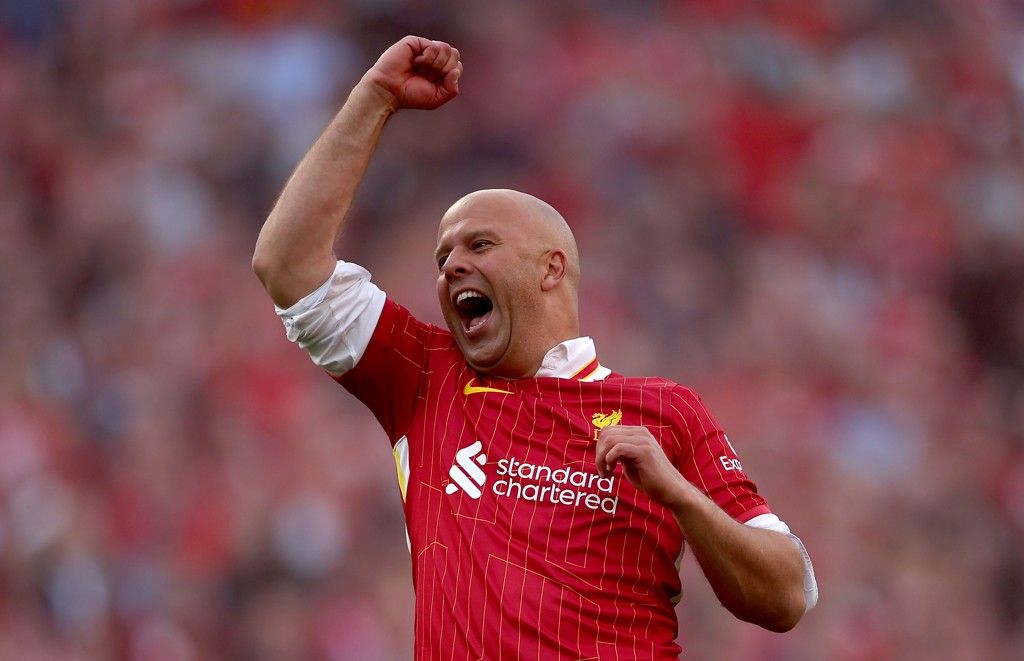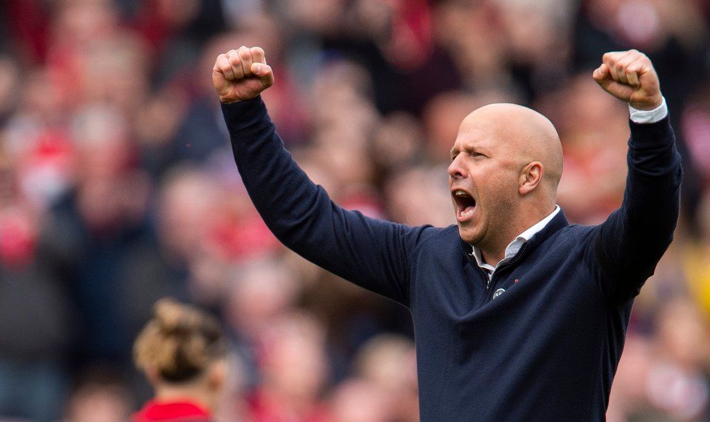 Soms, haatblogkindertjes, is het tijd om iets te bekennen. Komtie. Al een paar maanden kijken wij trouw alle wedstrijden, samenvattingen en interviews van Arne Slot als trainer van Liverpool. We kunnen het niet langer voor ons houden. Na de 4-0 overwinning op Leverkusen in de CL van gisteren kunnen we er niet meer omheen. Om in de elections-retoriek te blijven, WIJ CALLEN HEM: Arne Slot wordt, nee IS, een wereldtrainer. HolZwollands glorie in de Premier League. Slot laat zien dat het dus gewoon kan, een Nederlandse trainer in Engeland wiens visie verder reikt dan krampachtig overal maar de meest kleuterige versie van Hollandse school-voetbal proberen in te voeren. Een Nederlandse trainer in Engeland die ons niet allemaal voor lul zet als hij zich in het Engels uitdrukt. Sterker nog, het Britse journaille valt in katzwijm (zie bovenstaand). Maar vooral: een Nederlandse trainer in Engeland die week na week WINT, met overwegend MOOI VOETBAL. Waarmee hij dus al zo'n beetje alle records van beginnende trainers bij Liverpool en in de Premier League heeft verbroken. We gaan ons niet verlagen tot diepgravende analyses van wat er op het veld gebeurt. Wat ons betreft is het gewoon: prachtig om te zien. Wie weet brengt deze glimmende biljartbal ons OOIT de wereldbeker.