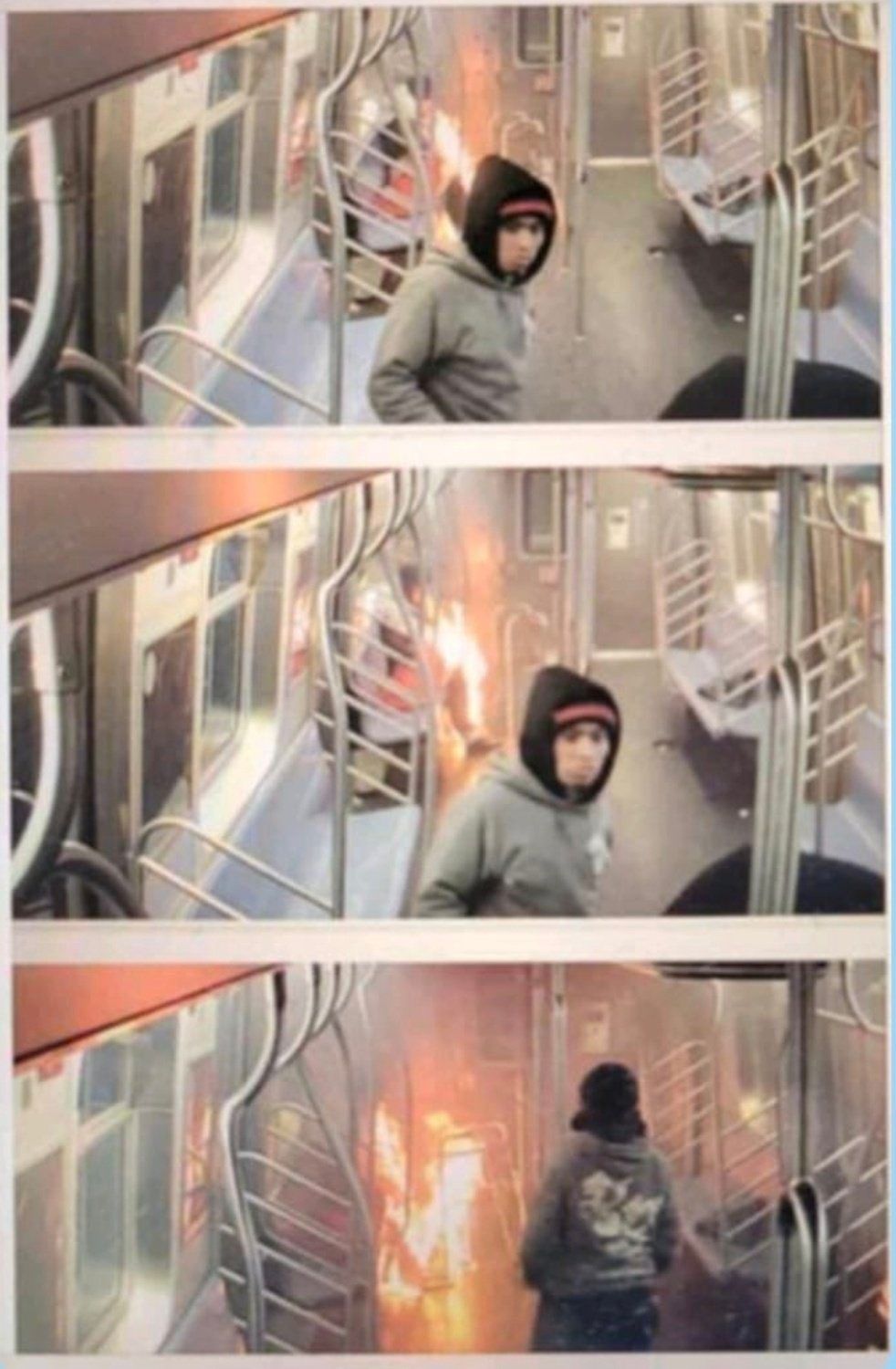 De New Yorkse metro is misschien niet de gezelligste plek op aarde, en dit is ook al niet het gezelligste topic. Maar gisteren is er daar dus een slapende vrouw in de brand gestoken door een (vermoedelijk dronken) 33-jarige Guatemalteekse immigrant en daarna overleden. De beelden zijn heftig, het verhaal is dat ook. "As the train pulled into the station, the suspect calmly walked up to the victim, who was in a seated position at the end of a subway car … and used what we believe to be a lighter to ignite the victim’s clothing, which became fully engulfed in a matter of seconds." Na de breek screenshots uit een andere video, waarop de dader te zien zou zijn terwijl hij bijna onbewogen de gevolgen van zijn eigen handelen bekijkt.