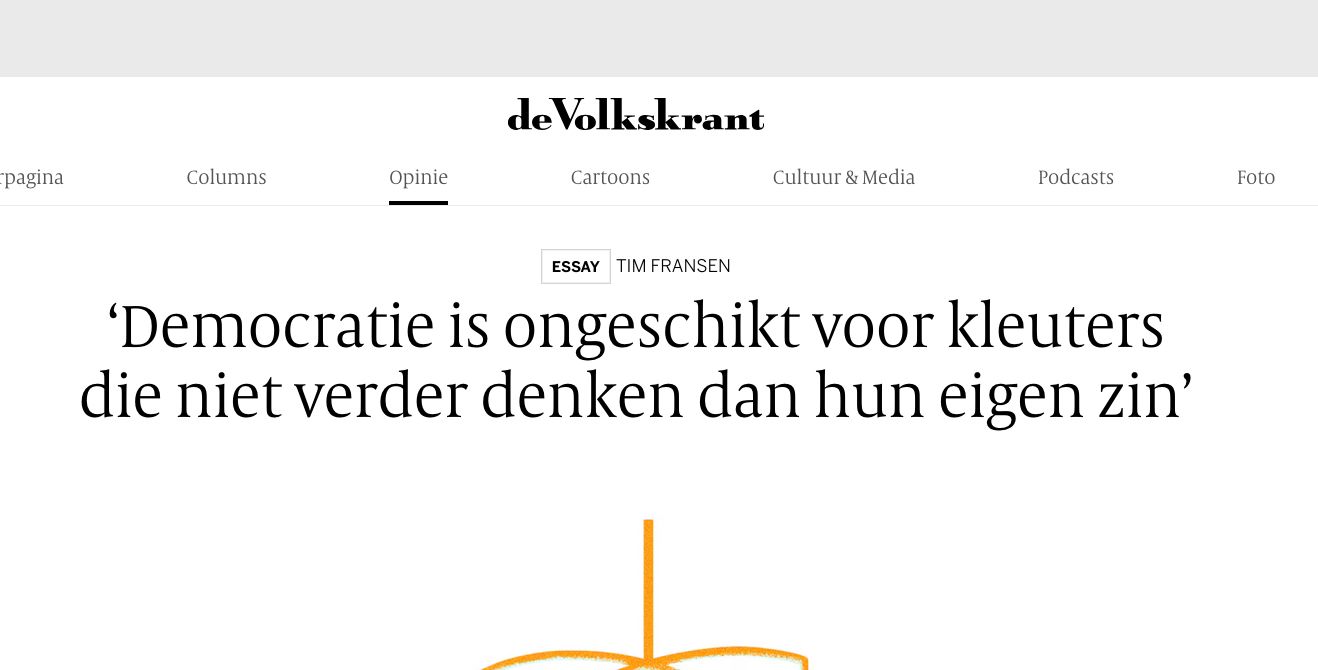 Heel essay in de Volkskrant waarin wordt gepleit voor het afschaffen van het volk