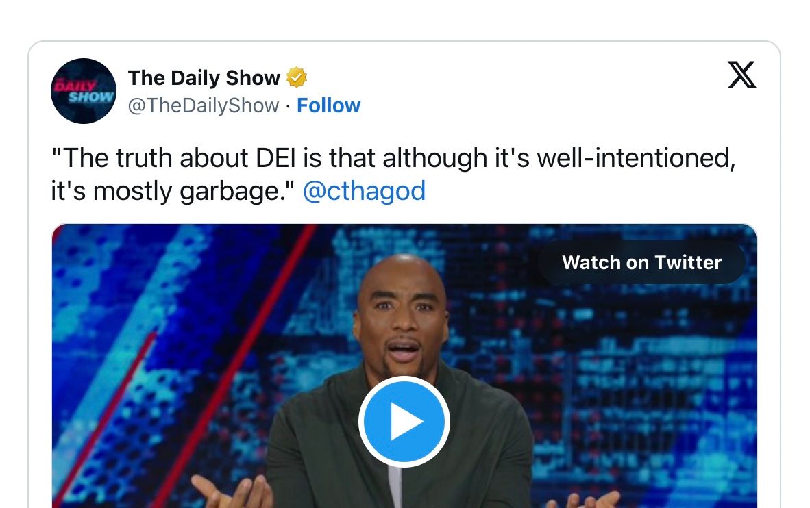 Het Systeem corrigeert koers. Daily Show noemt diversiteitsbeleid "mostly garbage"
