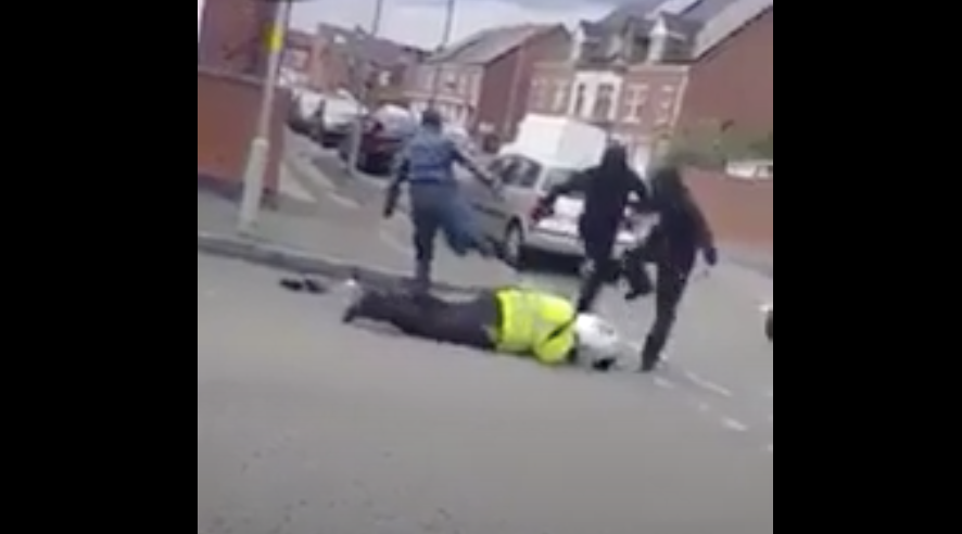 French police fleeing after having come under attack yesterday by migrant gangs in the no-go zone Saint-Denis in Paris.