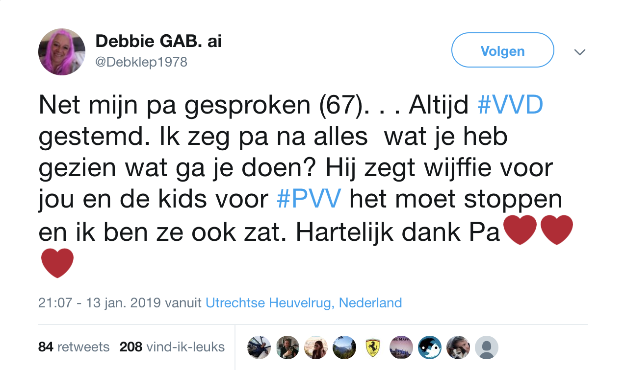BREEK. Vader van Debbie stapt over naar PVV, VVD loopt leeg, volk is het zat