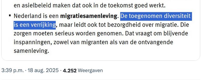 Afijn al met al best een schrijnend beeld dat in een stuk van de T naar voren komt. Eerder bleek D&I op ministeries ook al niet uitsluitend spotgoedkoop en nu wordt er bij de uitvoeringsdiensten dit jaar ook 2,5 miljoen door het paradeputje te worden gespoeld. De Raad voor de Rechtspraak, bekend van hardnekkig rassendenken en af en toe een lynchpartij, rost er ruim 5 ton doorheen. TNO doet iets met wetenschap maar klaarblijkelijk niet genoeg met wijven en dus is een hersteloperatie uit de grond gestampt twv 250 duizend euro. En dan is er dus nog de SVB, die 3,4 ton uitgeeft. Daarvan wordt onder andere een maandsalaris van circa zevenduizend opgehoest voor een coördinator, die zowel denker als doener is en in staat is om 'vraagstukken vanuit verschillende perspectieven integraal aan te vliegen' (in tegenstelling tot mensen die vraagstukken bijvoorbeeld vanuit een enkel perspectief integraal aanvliegen, of zij die vraagstukken wel vanuit verschillende perspectieven aanvliegen, maar dan weer niet integraal. Dat zijn sukkels en die moeten dood). Tamelijk unieke capaciteiten waar wij in ieder geval niet over beschikken. Voorts resulteert het in een prachtige podcast als onderstaande, waarin drie ingewijden vertellen wat er stom is aan Geert Wilders en Johan Derksen, en waaruit blijkt dat één van de presentatoren geen sociale media heeft maar wel de godganse dag het intranet zit te refreshen (GA EENS WERKEN IDIOOT!!1!).