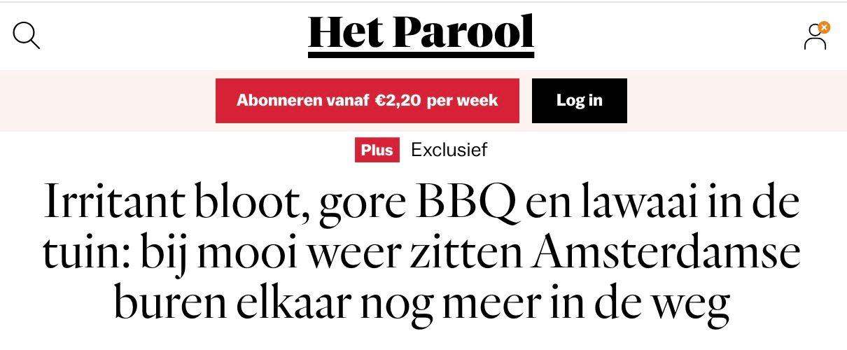 Gaza, Sudan, Jemen, Congo - maar weet u waar het pas echt ellendig is? Amsterdam! En dan vooral in de zomer. Als demense bij mooi weer naar buiten gaan. Zit je lekker in je binnentuintje vitamine D te harvesten met een kratje bier terwijl er worstjes (van de Vomar, om Wakker Dier te klieren) op de barbecue sissen, komt er opeens vanalles naar beneden zeilen van de balkons. Eieren, steelpannen, aardbeien, leverworsten (!). Dat is toch geen Lieve Stad meer? Kan iemand een Brief aan de Koning schrijven, want die is ook maar mooi medeverantwoordelijk. Wie trouwens in Het Parool-artikel op zoek gaat naar schitterende voorbeelden van "IRRITANT BLOOT" komt bedrogen uit. Niets daarvan. Alleen dit: