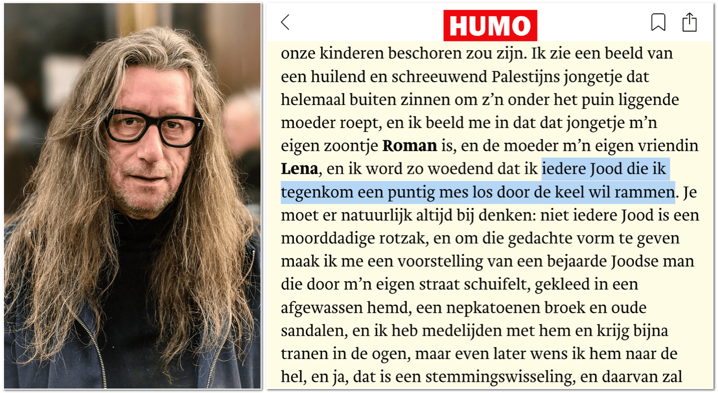 Herman Brusselmans column "iedere Jood die ik tegenkom wil ik een puntig mes door de keel rammen" offline gehaald door Humo