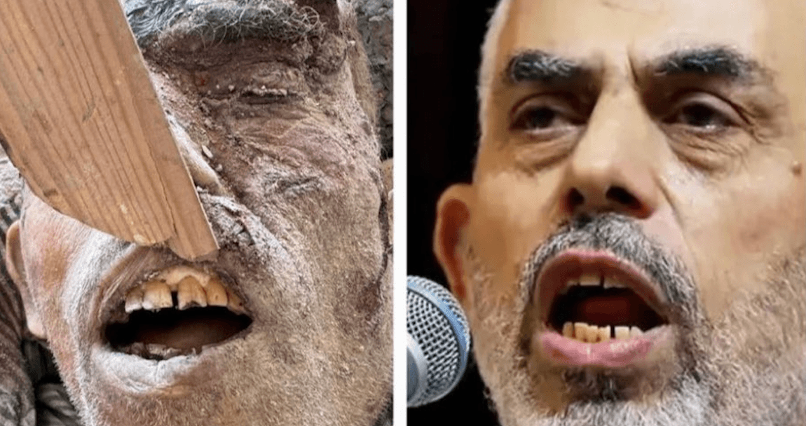 HET IS HEM - Hamas-leider Yahya Sinwar (foto boven de klik in betere tijden, foto na de klik in mindere tijden) is dood