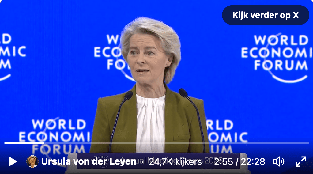 Von der Leyen in Davos over Groenland: "onze respons wordt onverschrokken, verenigd en proportioneel"
