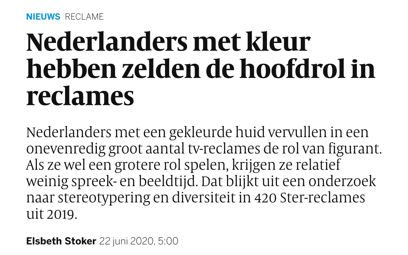 Cijfers: 'Mensen met kleur eigenlijk best goed vertegenwoordigd in hoofdrollen reclames'