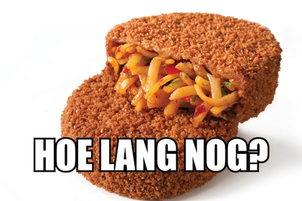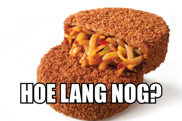 Dit was ons dus helemaaaal niet opgevallen want wij vragen bij de snackbar eigenlijk altijd hetzelfde voor de GSHQ-vrijmibo (6 bereklauwen met pindasaus, 8 patat extra mayonaise, 4 XXL-frikandellen met extra ui, 2 discodellen, 4 kipcorns met curry, 6 mexicano's met joppiesaus, 3 berenlullen, 2 kikasticks, 1 viandel, driekwart smulrol, 3 halve kipjes en voor iedereen een huzarenslaatje extra mayo voor tijdens het wachten) maar HET HOLLANDSE BRUINE FRUIT is in gevaar. Volgens onderzoek van Distrifood laat de consument de frikandel, de kroket en de bitterbal steeds vaker links liggen voor TROEP UIT AZIË. In schokkend rap tempo verliest de klassieke frituursnack terrein aan dingen als de DUMPLING (?), de GYOZA (??) en de YAKITORI (???). Nou yaki bah. De verkoopcijfers van die zooi namen sinds 2024 enorm toe, terwijl de bitterballenverkoop met 11 procent daalde, de kroket 6 procent minder werd verkocht en de verkoop van frikandellen met bijna EEN VIJFDE afnam. We mogen spreken van een crisis. Red daarom uw land en ga vandaag nog naar de snackbar. Weg met die in deeg gevouwen brokken voedselvergiftiging uit het Verre Oosten. Koop Hollandse snacks, en dan iets dat rijmt op snacks.