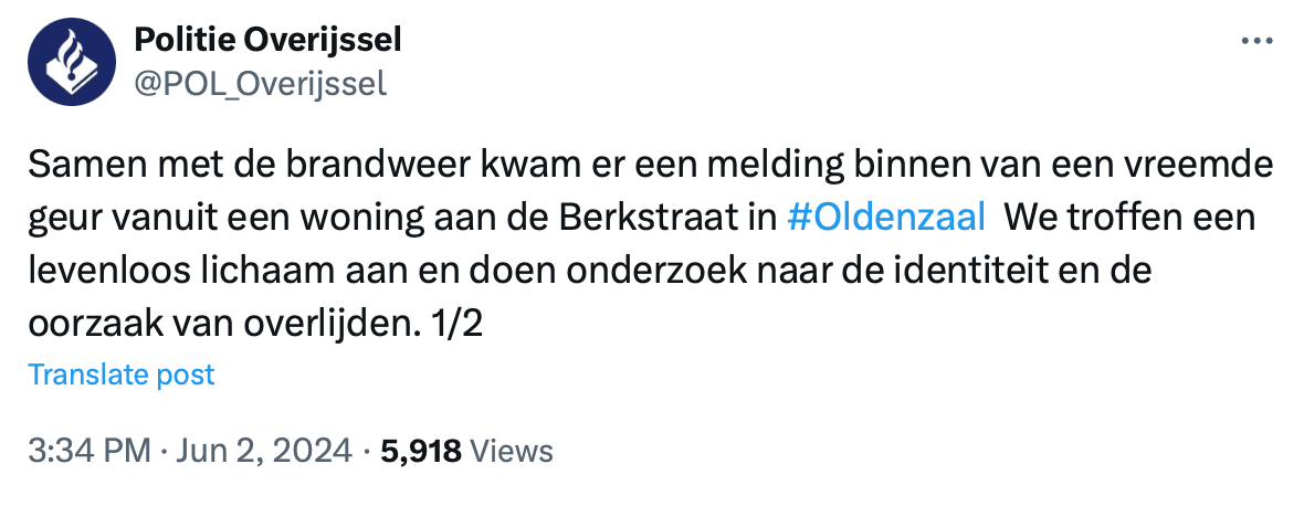 'Zo goed als ontbonden' lijk gevonden in woning Oldenzaal, huurder van pand aangehouden