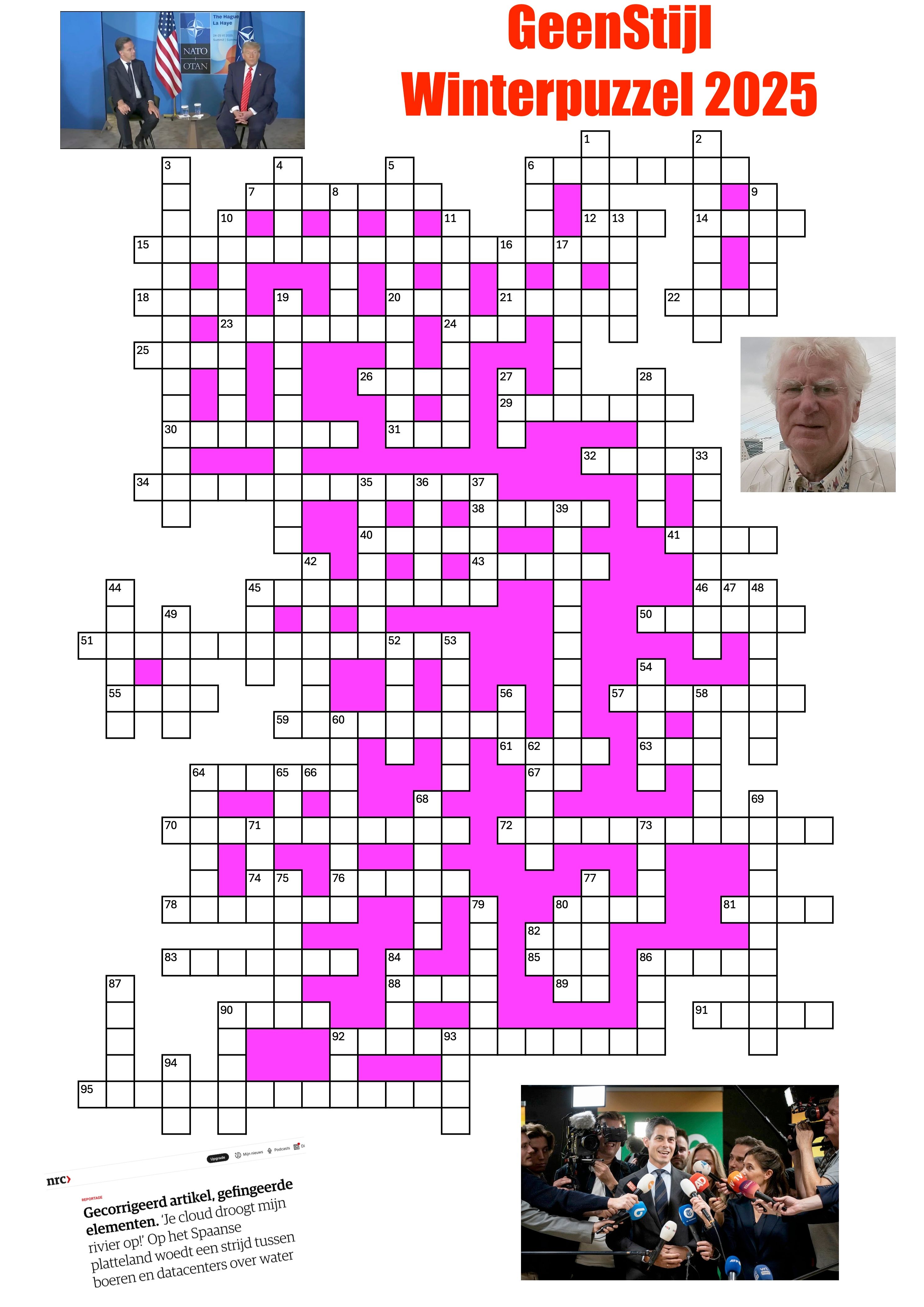 U weet inmiddels hoe het werkt. Uitprinten, invullen, niks winnen. De IJ is 1 letter, cijfers worden dit jaar uitgeschreven, dus als het antwoord '80' is, schrijft u gewoon 'TACHTIG' (dit is een hint, red.). Bij personen is het de ene keer de complete naam, de andere keer alleen de achternaam of alleen de voornaam, net waar we zin in hebben. Veel plezier en tot volgend jaar. Hierrr pdf.