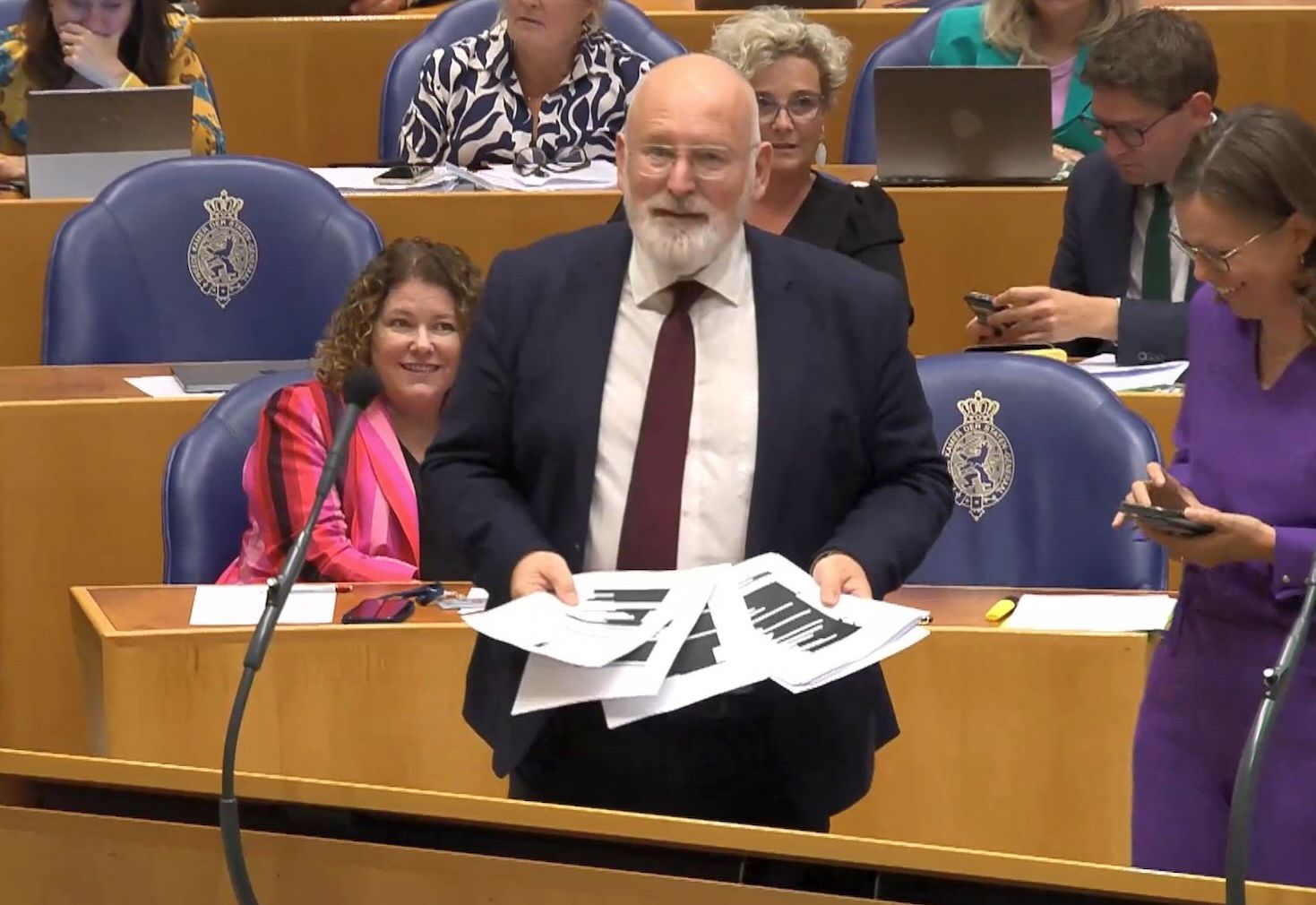 Het was PvdAGroenLinks-leider Frans Timmermans die een dag eerder aandrong de stukken die zwart gelakt waren ongelakt naar de Kamer te sturen (Na overleg met zijn secondant Jesse Klaver. Opvallend is dat het duo tijdens de Algemene Beschouwingen met de hand voor de mond overlegt. Een beeld dat onvermijdelijk doet denken aan de FBI-surveillancefoto’s uit de jaren negentig vorige eeuw van maffiabaas John Gotti en zijn consiglieri Sammy ‘The Bull’ Gravano terwijl ze op straat in de Bronx, New York, hun snode plannen bespreken).