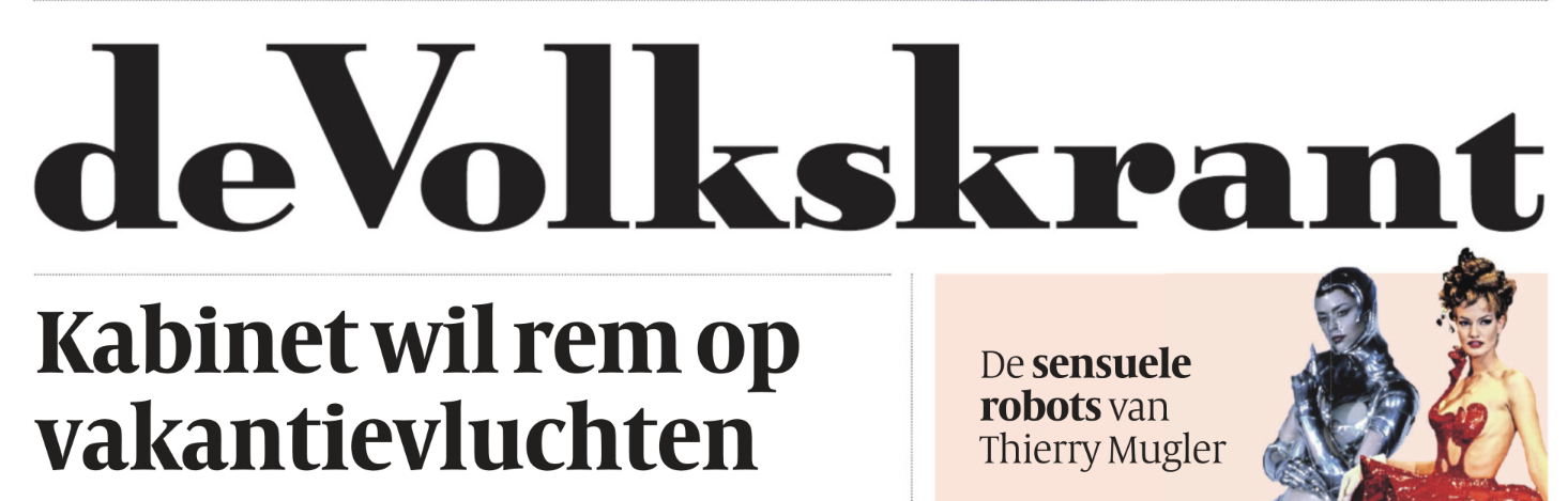 Idereen maar roepen dat het de boeren zijn die de boel op deze aardkloot vernielen. Maar het is natuurlijk de Volkskrant-lezer die 6 keer per jaar met Corendon naar Brazilië vliegt. Kan die Volkskrant-lezer ook niks aan doen. Dat komt door de vele advertenties voor goedkope vliegvakanties in de krant, en die dagelijkse mantra in de Volkskrant-kolommen dat je van reizen een beter mens wordt. Eerder pleitte GroenLinks al voor een advertentieboycot bij de Volkskrant. Die plannen neemt het kabinet nu over. Want Rutte doet gewoon wat Klaver zegt.