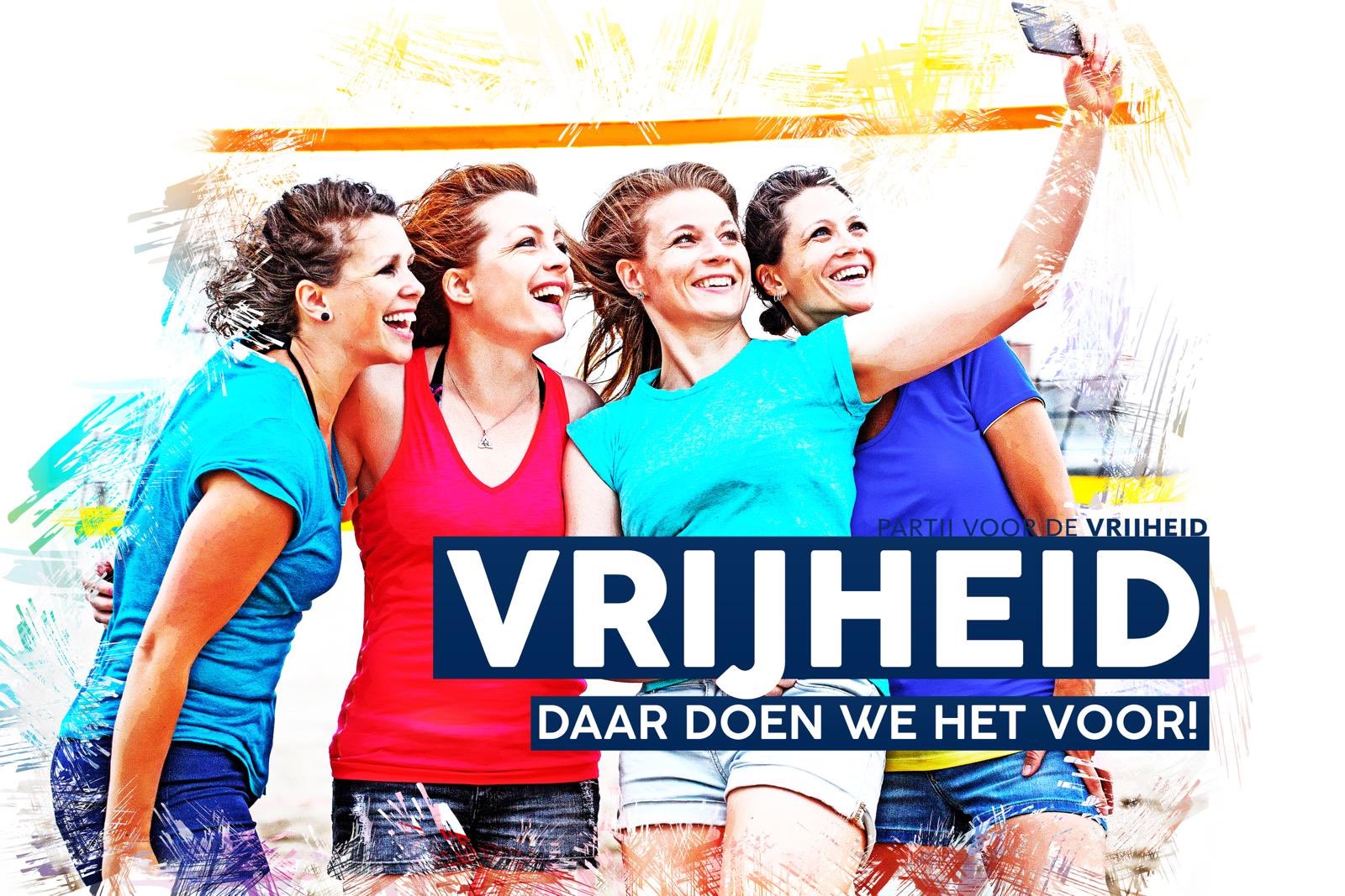Weg zijn de harde kleuren, weg zijn de stellige letters en het is gedaan met de ietwat bloedfanatieke boosheid. De verzetsbeweging van Geert Wilders begint met frisse tinten mint aan het nieuwe politieke seizoen. Ontwaarden we aan het begin van de zomer nog voornamelijk negatief geladen uitingen, zoals deze poster (met daarin een dwingende oproep aan boerkadragers om naar Saudie-Arabië te verhuizen) of deze uiting (waarin met een agressieve verlekkering vooruitgeblikt wordt op een hoofddoekverbod dat zou moeten volgen op het boerkaverbod), het is nu minty freshness wat de klok slaat. Vorige week zagen we onderstaande kleurrijke lofzang op de vrijheid al in de timeline van de PVV-leider voorbij schuiven, vandaag blijkt deze nieuwe, optimistische lijn van image empowerment en positive reinforcement (salestermen uit het paarse boekje - red.) te worden doorgetrokken, zoals bovenstaande beeltenis laat zien.