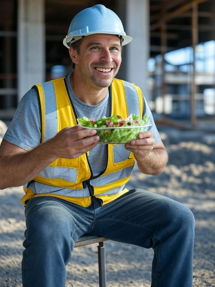 EVEN LACHEN... een bouwvakker met een salade