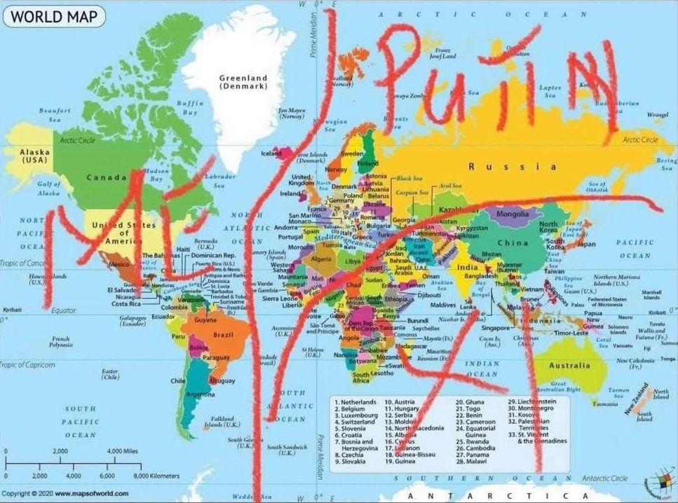 Schakelen we nu over naar de Staatsomroep voor de allerlaatste geopolitieke ontwikkelingen. Er was dit weekend veel te doen over een setje Epstein-foto's, maar dat was allemaal afleiding voor deze uitgelekte World Map van de heer D. Trump. We staan aan de vooravond van een nieuwe fase in De Geschiedenis, en er zijn allerlei duistere zaken gaande. Amerikanen verlaten Amerika, Duitsers verlaten Duitsland. En Polen verlaten Engeland. De Grote Nederlandse Dichter H. Westbroek vroeg zich ooit af: "waar kan ik heen?" en bovenstaande kaart is daarbij een prima toergids. Overweegt u Hongarije, Bulgarije met die mooie Funda-kaveltjes van 50.000 euro bedenk dan dat u weldra tegen De Chinees moet vechten, overweegt u Azië bedenk dan dat-u aan de WeChat moet, en alles kwijtraakt. Overweegt u de VS, dan moet u als de sodemieter 5 jaar browser-history en alle social media wissen. Enfin, excellentie Brekelmans... welk wapentuig heeft u nu weer gekocht? LIVESTREAM