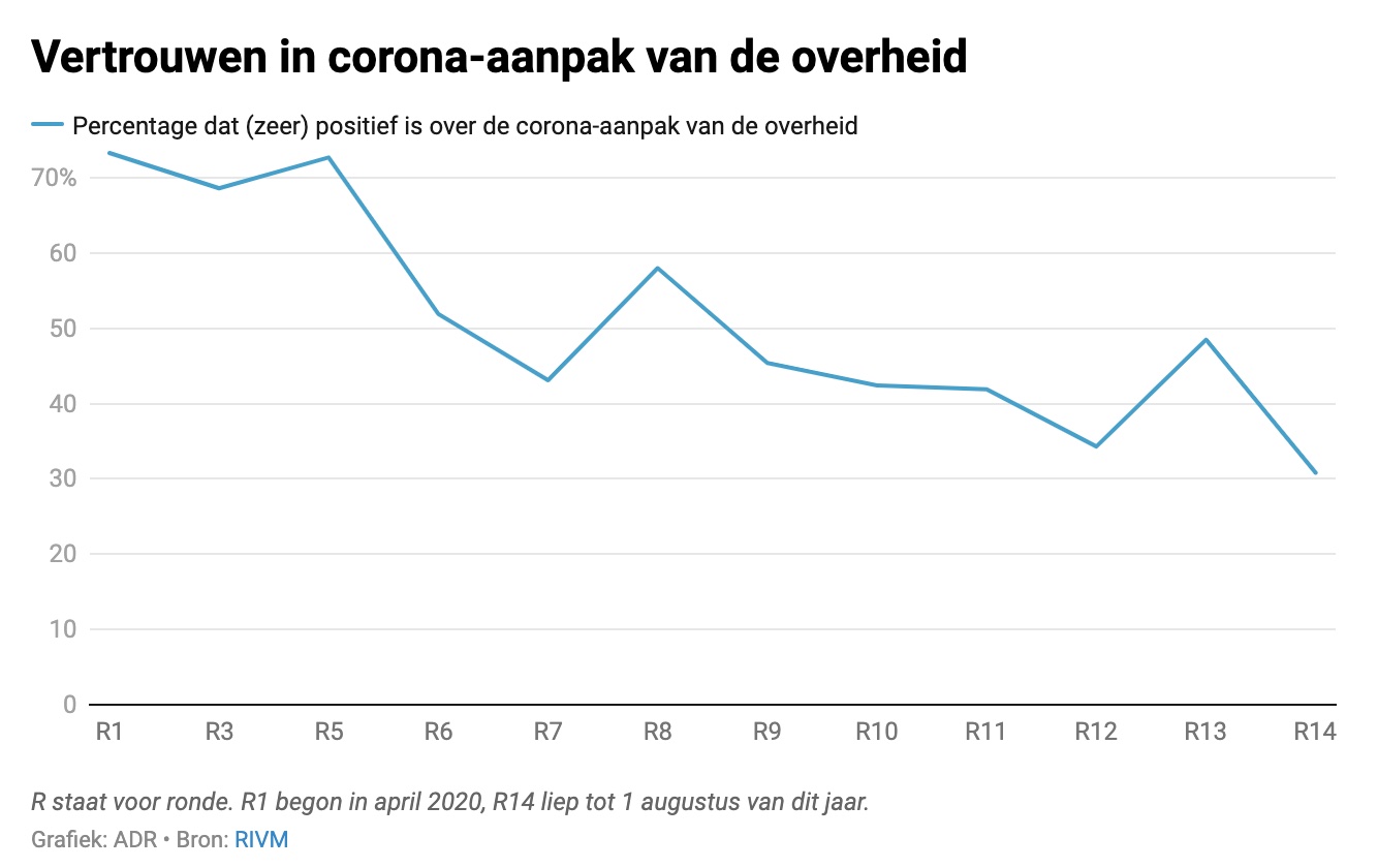 Daarna is het beleid altijd reactief gebleven, waardoor enerzijds te veel moreel initiatief bij (gestoorde, opportunistische en cynische) complotdenkers is komen te liggen en anderzijds de overheid (RIVM, OMT en vooral het kabinet) te veel leugens en loze beloften op elkaar gestapeld hebben om het brede vertrouwen te behouden dat nodig is om het virus collectief en solidair te verslaan.