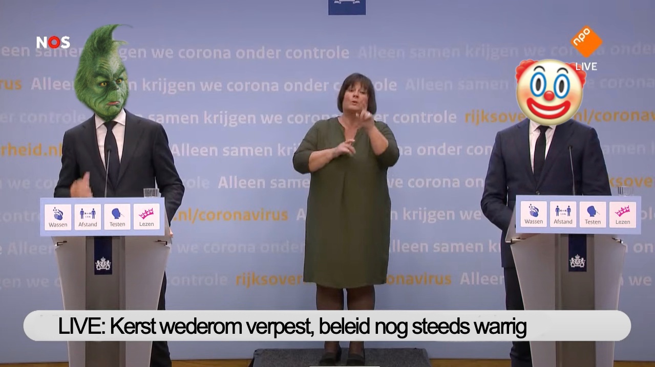 Terwijl politiek Den Haag naar deuren staart en tevergeefs wacht op nieuw elan, moeten we niet vergeten dat het wederom persconferentiedag is. Rutte en Hugo halen nog even het maximale uit hun demissionaire status en kondigen vandaag aan dat uw kerst en jaarwisseling ook dit jaar sobere gebeurtenissen blijven. De avondlockdown krijgt een verlenging van drie weken, waardoor tafelen in de horeca van tafel is. Ook blijft het advies voor het aantal gasten waarschijnlijk op vier staan, wat ideaal is als u een excuus zocht om gekke ome Harry niet uit te nodigen, maar een tegenvaller blijft voor mensen die wel leuke familie/vrienden hebben. Vuurwerk is al in de ban gedaan en feestjes in de avond zijn VERBOTEN, dus dat wordt weer een jaarwisseling met een oliebol op de bank stomme televisie kijken. De grote verrassing blijft (totdat het uitlekt natuurlijk) of de basisscholen een weekje extra kerstvakantie krijgen. Het OMT wil dat wel, maar het kabinet was eerst tegen en twijfelt nu nog, wat nogmaals aantoont dat er geen enkele visie zit in deze aanpak. Hugo mag tenslotte nog even uitleggen dat we nu echt, echt, echt meer gaan boosteren en daarna wordt iedereen weer naar huis gestuurd en tuft deze maatregelentrein langzaam de winter door. Fijne feestdagen!