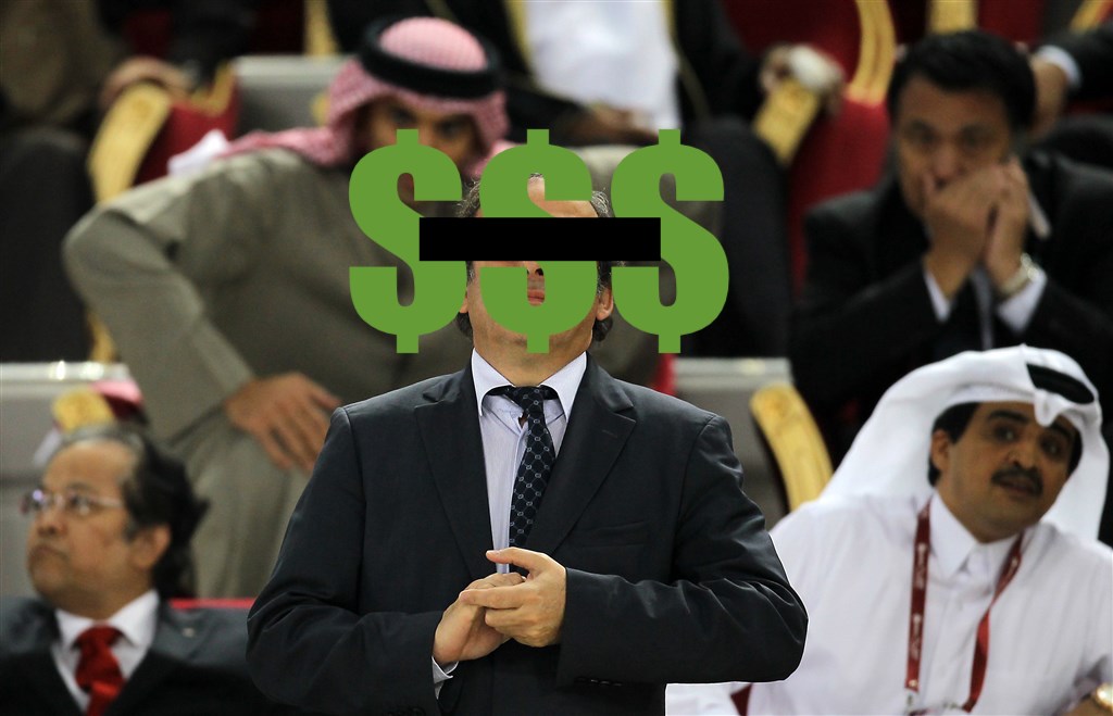 Poep raakt de ventilator in de nog steeds naar corruptie, slavernij en totale morele verdwazing stinkende toekenning van het WK voetbal 2022 aan Qatar, bekend van tv en van subsidie krijgen van Sigrid Kaag. Michel Platini, vleesgeworden bobo en tevens het bewijs dat ex-topvoetballers ook gewoon totale lullen kunnen zijn, is door de Franse politie opgepakt wegens verdenking van corruptie. Platini ("brandschoon" volgens Michael van Praag) vond het "geen fout" om het WK in 2022 aan Qatar toe te kennen. Dat is volgens ons al een behoorlijke aanwijzing want een WK voetbal in Qatar organiseren is gewoon een heel erg slecht idee volgens iedereen die niet is omgekocht door Qatar en een heel goed idee volgens iedereen die wel is omgekocht door Qatar. Je kunt die swamp bij de FIFA wel proberen te drainen, maar dan hou je gewoon helemaal niets meer over behalve die keepster van het vrouwenteam van Thailand die er dertien doorliet tegen Amerika omdat ze gewoon niet kan keepen. Wel benieuwd nu of ze bij het gevangenen voetbal in Frankrijk gele hesjes dragen.
