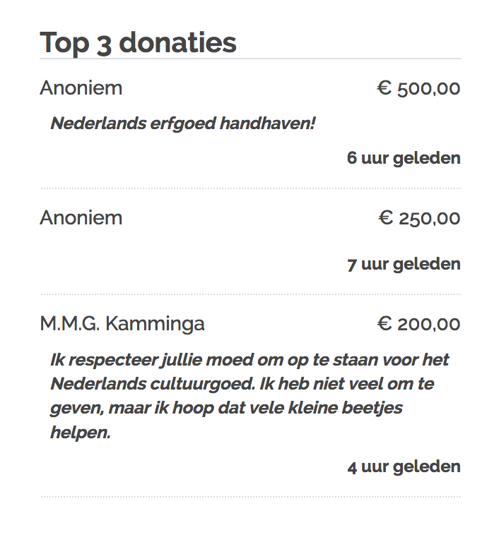 Alle donateurs, ook namens Jan, Kees& Sywert, enorm bedankt!