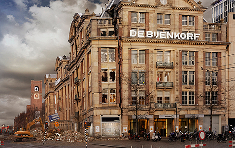 Amsterdam, 2021. Alle nieuwe led-lampjes in de lantaarnpalen doen het niet meer, want de stroom van de GroenLinks-centrale in Diemen is uitgedoofd, na de laatste boom uit het Vondelpark. Parkeren is 80 euro per uur, een blikje Smac doet op de Ten Kate-markt 40 euro en de meeste kades zijn ingestort. Evenals De Bijenkorf.