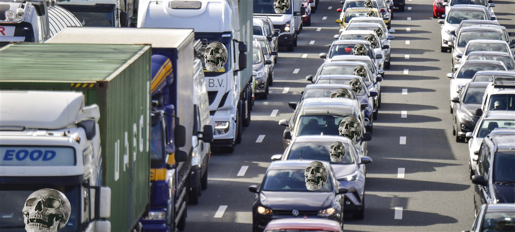 Nou mensen die nu al iedere dag drie uur in de file staan wegens verstoppingen des doods, vreselijke kop-straatbotsingen de godganse tijd, strooizout opperdepop en andersoortige ellende, mensen die van de weeromstuit maar een keertje met de trein proberen te reizen wat helemaal niet mogelijk is wegens loeiduur, sardientjes in blik en blaadjes op de rails. Het wordt. Alleen. Maar. Erger. Het Kennisinstituut voor Mobiliteitsbeleid, en die kunnen het weten, meldt voor 2024 'een toename van 8 procent van de mobiliteit en dat leidt tot een toename van de wachttijd met 23 procent'. Grappig hè, dat ze allemaal minder files willen. De vvd wil minder files en die zijn al honderd jaar aan de macht. D66 wil minder files want automobilisten zijn kleaudtzakken. CDA wil minder files, ook in de regio. DENK wil minder files koop maar een vliegend tapijt. 50Plus wil minder files ga maar lekker koersbal spelen in het buurtcentrum. PVV wil minder files iedereen terug naar z'n eigen land probleem opgelost. SGP wil minder files moet van Jezus. FvD wil vast ook wel iets met files. CU wil minder files meer tijd voor het gezin. IEDEREEN wil minder files, maar ze zitten elkaar zo in de weg over de manier waarop, dat we alleen maar meer files krijgen. Gelukkig mogen we binnenkort overal maximaal 100 km/h rijden, die snelheidsdaling is wel zo'n handige maatregel ALS HET TOCH OVERAL MUURVAST STAAT