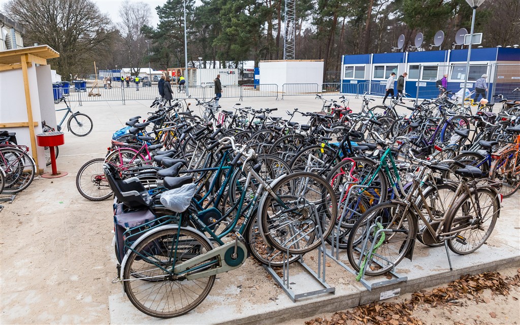 Gratis fietsreparaties bij inloopcentrum voor vluchtelingen. Vrijwel alle fietsen blijken gestolen