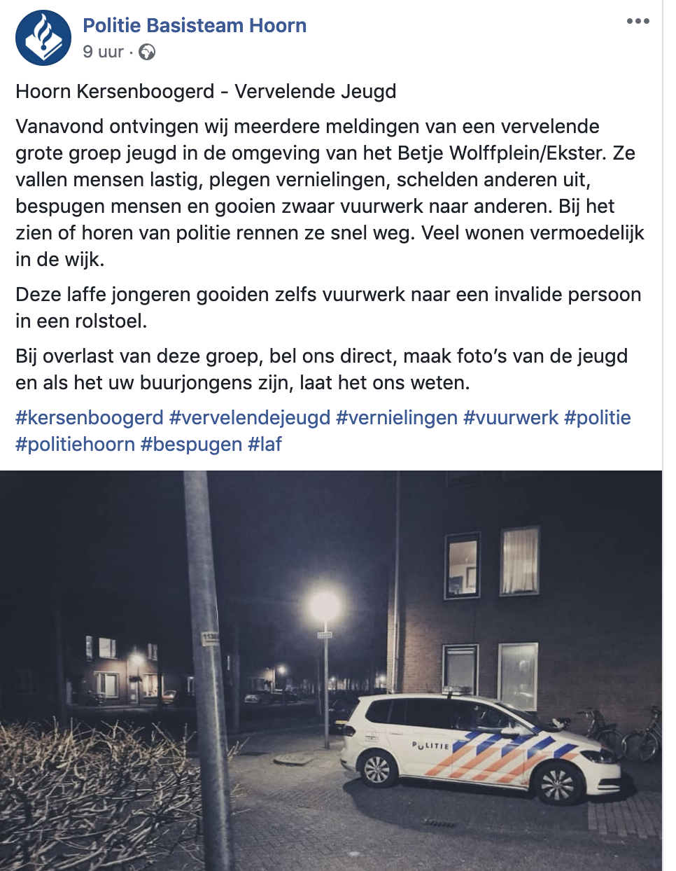 Dus de ene partij vindt dat we elkaar eens wat meer hele goede morgen moeten wensen. De andere partij is de hele tijd druk met een of andere kinderachtige metafoor van een vaasje. De volgende partij is continu bezig met het verkopen van truien, hi-hi-ha-ha ik ben een klimaatdrammer, wat zijn we toch weer volwassen. Weer een andere partij roept wat dingen met de hand op de Bijbel en verder hebben ze zelf ook geen flauw idee wat hun bestaansrecht is. En ondertussen knalt een of andere mentaal gestoorde waus drie mensen af in een tram en elders in het land breekt een verzameling """vervelende jeugd"""" (dixit politie) een complete wijk af. Intimidatie, vernielingen, scheldpartijen, tuffen en nu ook vuurwerk gooien naar een rolstoeler. Iedereen weet wie die raddraaiers zijn, maar niemand kan, durft of mag ingrijpen. U weet wel, in de wijk waar mensen al meer dan twee jaar 's avonds hun huis niet meer uit durven. Nou jongens, snel wat klimaatdrammer-truien uitdelen, wie weet draagt dat bij aan een oplossing in dit gave land! Maar ja. Je hóeft er niet te wonen.