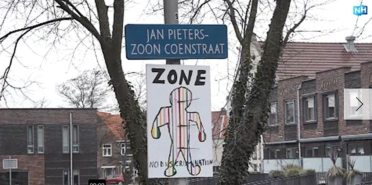 Als we de roomblanke Arzu's & Anousha's van het schitterende IJmuiden mogen geloven, marcheren er wekelijks honderden witte puntmutsen door de straten van het havenstadje, en branden er iedere avond kruizen in tuinen danwel bungelen er minderheden van kleur aan bomen met een brandende autobanden om hun nek. Daarom is het zo belangrijk dat er een kunstzinnig bedoelde disclaimer bij het straatnaambord van zeeheld Jan Pieterszoon Coenstraat komt te hangen. Opdat wij nooit vergeten enzo. Wel vervelend weer dat de Somalische PoC van dienst hinderlijk voor de voeten loopt van de IJmuider Dipsaus Deugbrigade. Maar dat is Schuld van NHNieuws. LOLFILMPJE