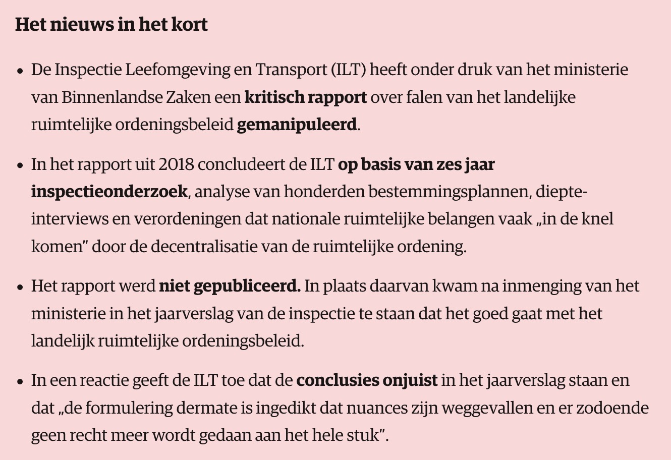 1. Is de minister (beterschap, trouwens) bekend met het bericht 'Ministerie hield rapport over falen ruimtelijke ordening tegen' in NRC Handelsblad?