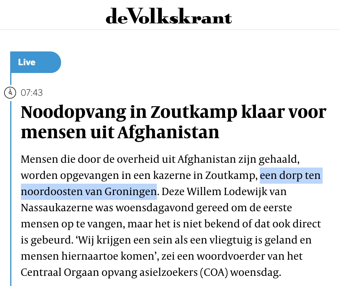 Je zal toch maar in Zoutkamp wonen, en gekwetst worden door die domme deugers van de Volkskrant, met hun institutioneel randstadisme, endemische minachting voor De Regio en zero kennis van Dit Land, dat ons land is. Shout-out naar 't sympathieke vissersdorpje Zoutkamp, ooit een militaire stronghold, het Mekka van De Garnaal (tot Marokko het overnam) en waar ooit een patat-automaat op de dijk stond. (Kostte 1 gulden, en het was viesss.) Nu u er toch bent, haal ff een palinkie bij Gaele Postma.
