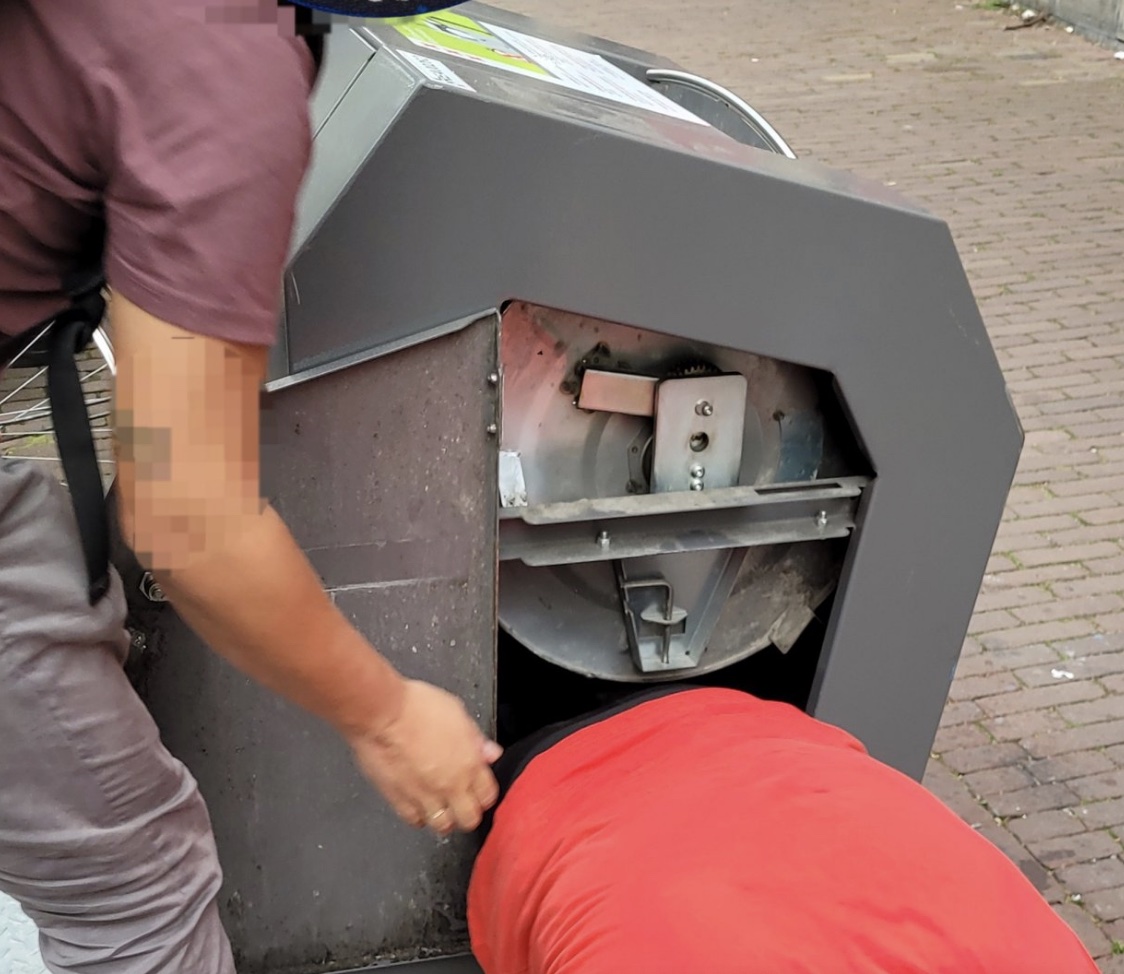 Shout-out naar Meneer in Rood Shirt wegens niet janken piepen huilen bij hulpinstanties/gemeente, maar zelf actie ondernemen. Per ongeluk je autosleutel weggooien in een ondergrondse huisvuil-containter. Ons overkomt het niet, maar shit happens nou eenmaal. En doortastendheid ook. Opeens heb je het: je kruipt die gore shithole met rottende etensresten, meurende poepluiers, gistende condooms, gedumpte babietjes & half opgegeten vega-maaltijden in EN JE HEBT GEWOON JE AUTOSLEUTEL TERUG! Wat een heerlijke Nederlander ben je dan. Deze meneer mag van ons iedere dag om 12:00 uur met 80 km/h over de A12! Held. (Via Agent Jeroen)