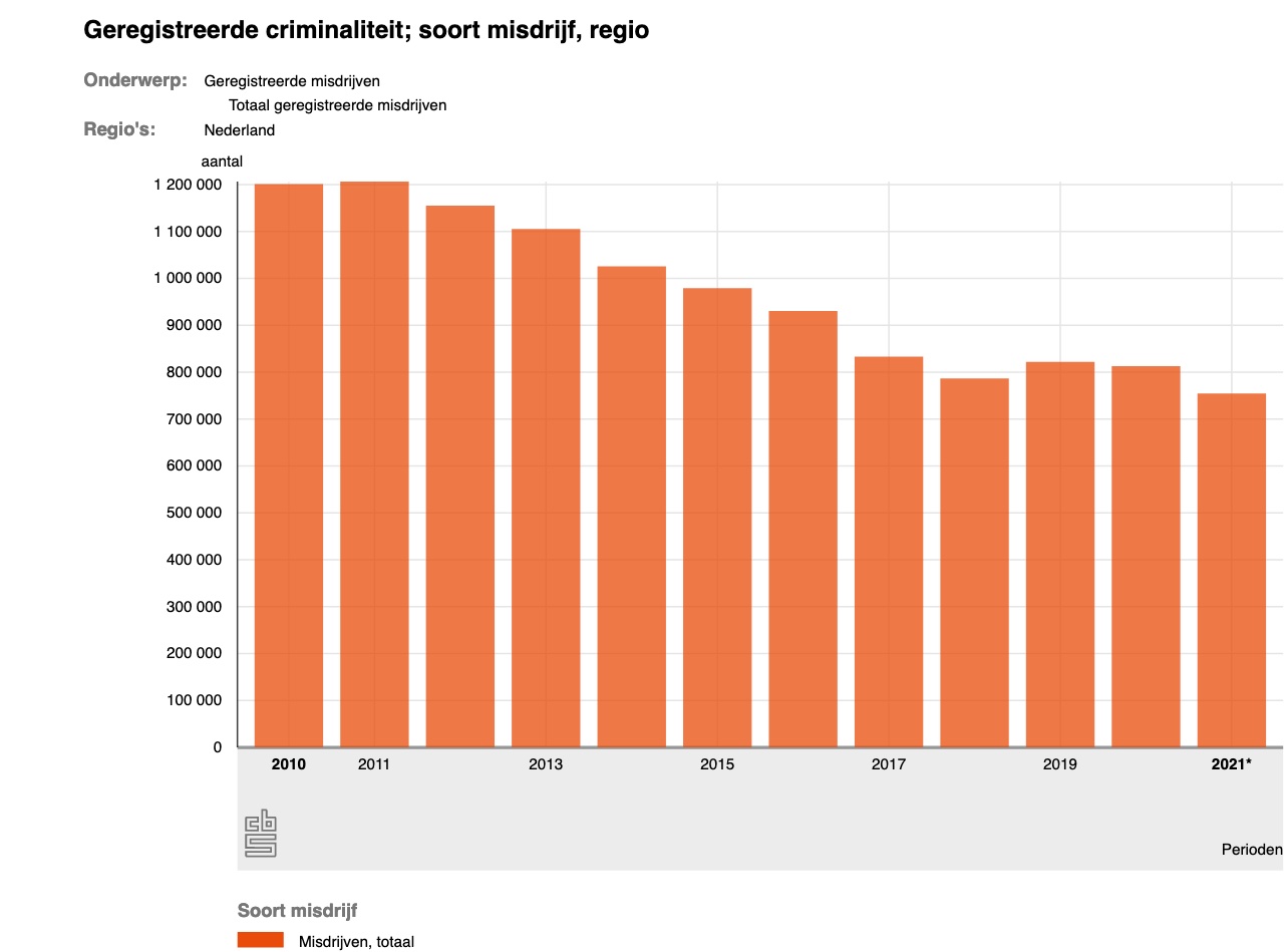 Sowieso hè. Hoe kun je nou weten dat iemand die aangifte doet NA een misdrijf, ook echt aangifte doet DOOR dat misdrijf? En hoe kan het dat je, als je de televisie en het internet uitzet, je opeens helemaal geen daling van het aantal misdrijven ziet? En hoezo hebben we het eigenlijk de hele tijd over 'misdaad'? Vertrouw gewoon op je natuurlijke immuunsysteem, dan hoef je helemaal niet bang te zijn voor zoiets als 'misdaad'! Hoe dan ook: het totaal aantal 'traditionele misdrijven' in Nederland blijft (na een bliepje omhoog in 2019) gewoon dalen. Veel plezier met JA MAAR NIEMAND DOET MEER AANGIFTE IN ENQUÊTES DIE EXACT DEZELFDE DALENDE TREND VERTONEN ALS VRIJWEL ALLE ANDERE WESTERSE LANDEN roepen.