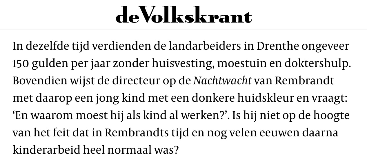 Heerlijk opinie-artikel in het Volkskrantje waarin de slavernijtentoonstelling in het Rijks Museum in Amsterdam tot op de enkels wordt afgebrand door good old Piet Emmer, die overigens in diezelfde Volkskrant vrij ranzig als "racist" werd bestempeld. Maar Piet Emmer is geen racist (deel 1 en deel 2). Piet Emmer is iemand die de geschiedenisboekjes wel leest. De goede geschiedenisboekjes dan, niet die herschreven wereldburgerschap deugbagger die sinds midden jaren zeventig vorige eeuw in de kinderhoofdjes wordt geprent. Leest allen: Wie een beperkte blik op de slavernij wil, spoede zich naar het Rijksmuseum. En de heer Emmer wensen wij veel sterkte de komende dagen. Het gehuil van de uitgereden lynchposse's zal niet te harden zijn. Voor wie niet van het UEFA Slavernij-feestje "voetbal" houdt, HIERRR nog allemaal geinige topics over het steeds omstredenerder Rijks Museum, ooit hét museum van Nederland.