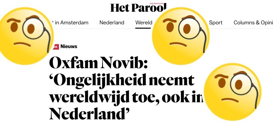 Hee. Daar is de jaarlijkse door Oxfam-Cherrpyick (bekend van: verkeerde rapporten sturen over seksschandalen bij Oxfam en kansloze rechtszaken tegen de Nederlandse Staat over Israël) veroorzaakte nepnieuwslawine weer, om de start van het World Economic Forum-congres in Davos te vieren. Moet u eens lezen wat de overtikmedia vannacht kort na 12 uur (vermoedelijk niet omdat ze het rapport zo snel hadden gelezen, maar omdat ze het persbericht onder embargo hebben overgetikt) publiceerden: