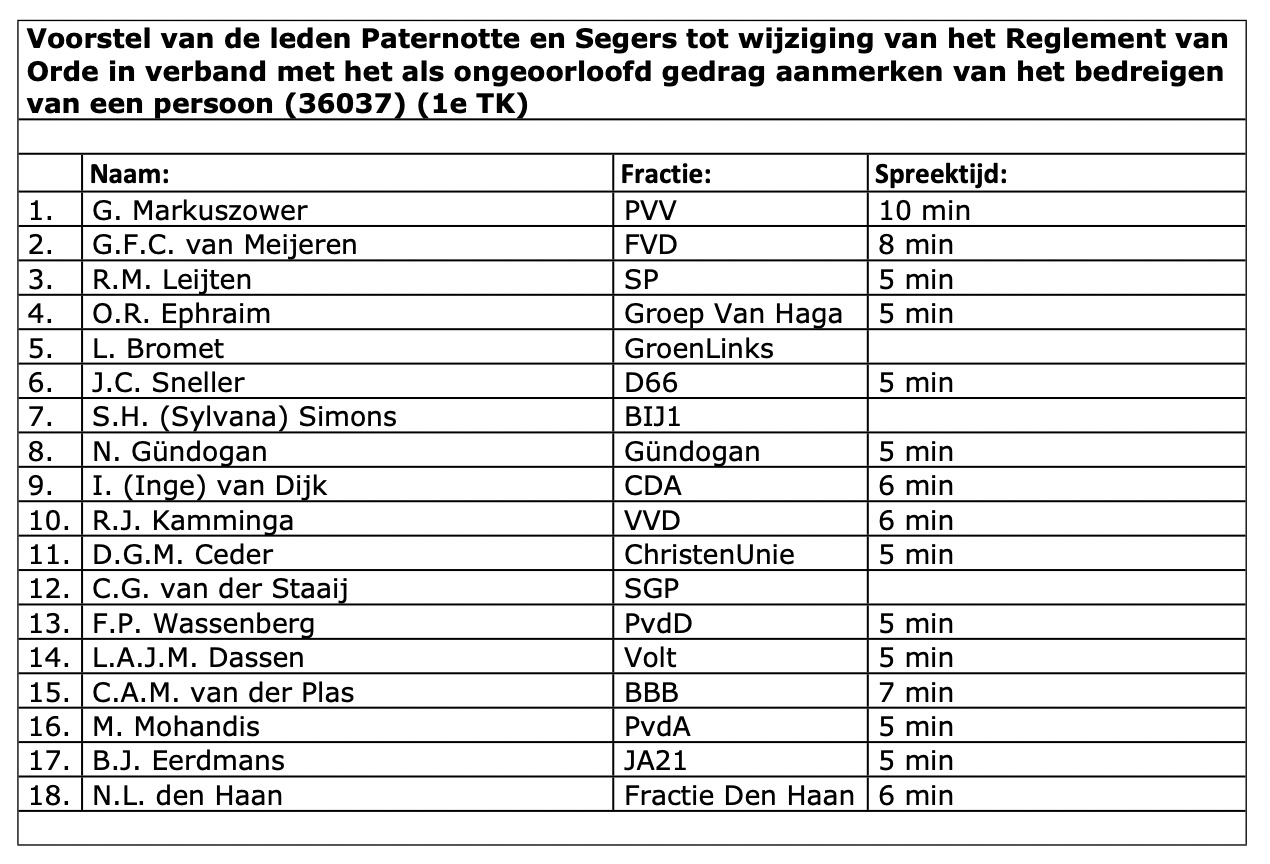Okee, het is nog geen 11:00 uur. Maar pak toch maar de Chips! Nootjes! Bier! Want we krijgen een TUMULTUEUS plenair debat in onze Nationale Vergaderzaal. Jank Jankernotte en Gert-Jank Sniffers willen het Reglement van Orde wijzigen in verband met het als ongeoorloofd gedrag aanmerken van het bedreigen van een persoon. En dat allemaal omdat Peppi Houwelmans tegen Ploert Ploertsma gezegd heeft dat er tribunalen komen. 88 crisii in dit land, maar de deugkleuters met 200K pj voelen zich aan hun taas getrokken door de drogist van Forumland. Kostelijk. Tribunalen... in een land waar nog geen toeslagenambtenaar ook maar berispt is. We hebben er zin an! Dik 3,5 uur jijbakken & Bergkamp, BeRGkAmP, BERGKAMP!