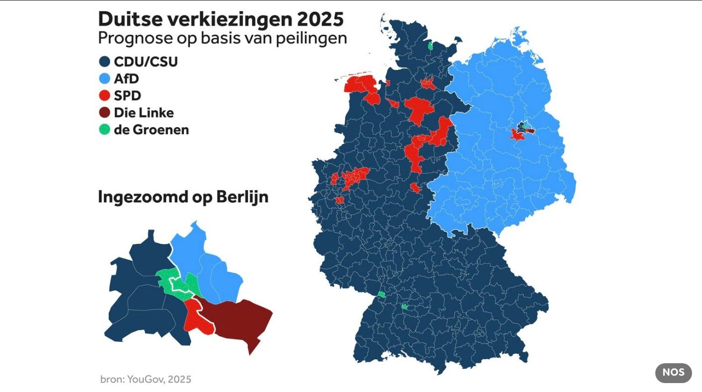 Kaartje Prognose Duitsland geleend van de NOS, dat als een soort Henk aan de zijlijn de stand bijhoudt. Wat de uitkomst zondag in Duitsland wordt weet niemand... hoeveel Duitslandkenners, Weidel-verstehers & mogelijk Afghaans-Russische Mini-bestuurders (wtf?) er ook worden aangehaald. Peilingen zijn palingen & prognoses zijn peop. (We herinneren ons allemaal die bekende Nederlandse journalist en zijn historische reportage: "Vier redenen waarom Kamala Harris gaat winnen.") Nou, roept u maar! En wat is landslide in het Duits? Meer over die schitterende fantoomgrenzen en spookkloven bij onze Oosterburen onderstaand bij Tomas Pueyo, en dat is heel geen koekenbakker. Hem kennen we nog uit de duistere coronatijd van 2020 toen-ie met The Hammer & The Dance Theorie kwam.