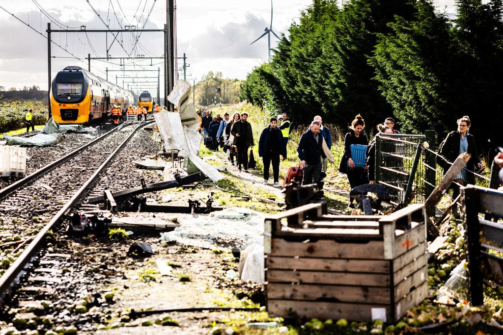 Zelden werd de vaderlandse politiek zo mooi verbeeld als vandaag in Meteren, Gelderland. Daar botste een passasgierstrein op een vrachtwagen geladen met fruit. Boem was ho, en daarop 5 lichtgewonden, waaronder ook de vrachtwagenchauffeur met peren. Vervolgens schampte een andere tegemoetkomende trein de treinramptrein, en is er ook een trein met lakschade. De NS-passagiers (die toch al niet voor hun lol in de gele koolmees-rupsen zaten) konden uitstappen en werden met bussen naar Geldermalsen gebracht. Of all places. Door de aanrijding rijden er minder treinen in het hele land, en dat duurt tot vanavond. Kortom: het was vandaag ouderwets kudt met peren.