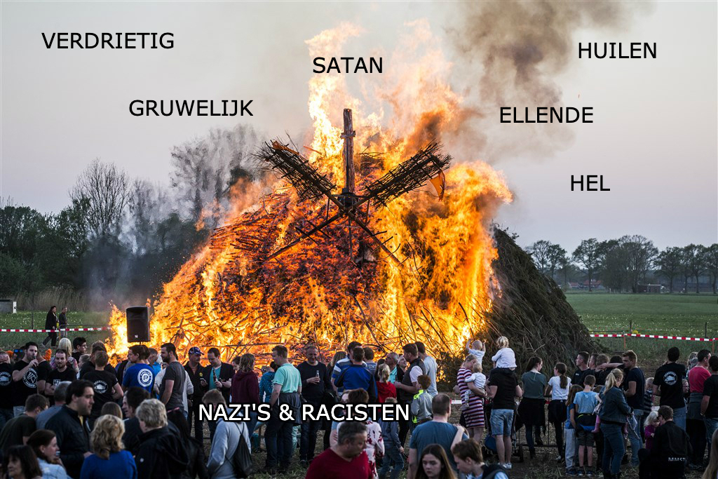 Nieuw hoofdstukkie in The War on De Burger. Het Staatsjournaal dropt even een dubieuze stelling over eeuwenoude paastradities aan de overkant van de IJssel en/of uw private heat supplier naar eeuwenoud concept. U moet namelijk kappen met Nederlander zijn én aan de warmtepomp van de Brusselse energie-lobbies. Dat de NPO jaarlijks een miljoenmiljard airmiles in fijnstofbussen maakt om dat hele cohort aan deugpresentatoren en BN-ers op vliegvakanties te sturen voor stupide reisprogramma's, is natuurlijk weer héééél wat anders... Enfin, geniet u van de schitterdende plaatjes van typisch OostNederlandse paasvuren, waarmee die regiopeeps daaro de lente en het leven vieren...