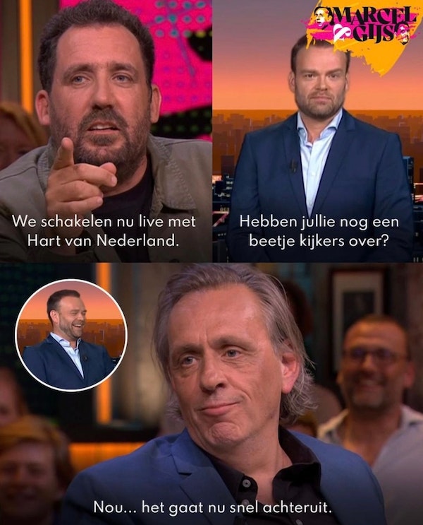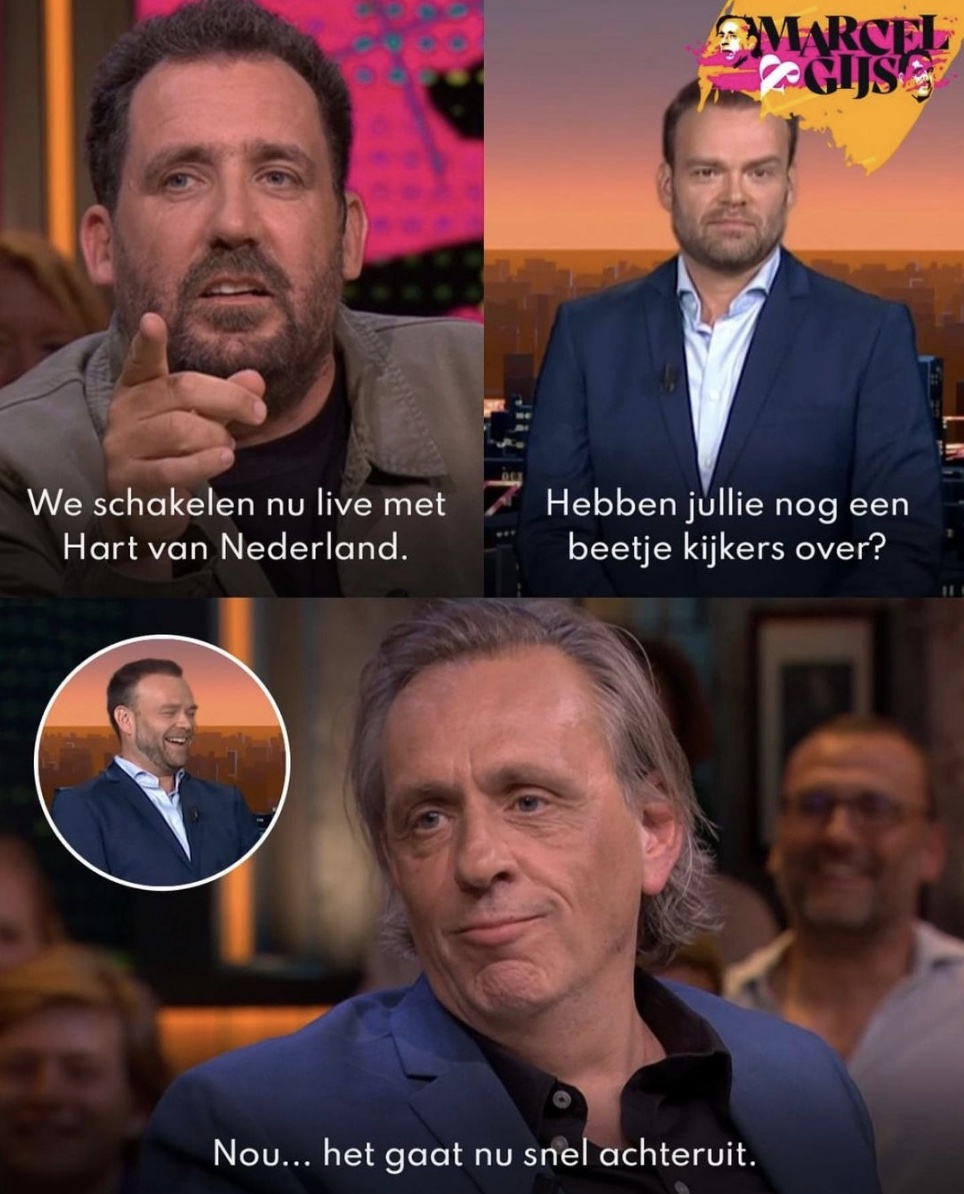 Update Hebben jullie het idee dat je je gehoord voelt, vraagt een verslaggever aan iemand, geen idee wie, ook wij staan stijf van de spanning. Geniale, tijdgeestvattende vraag.