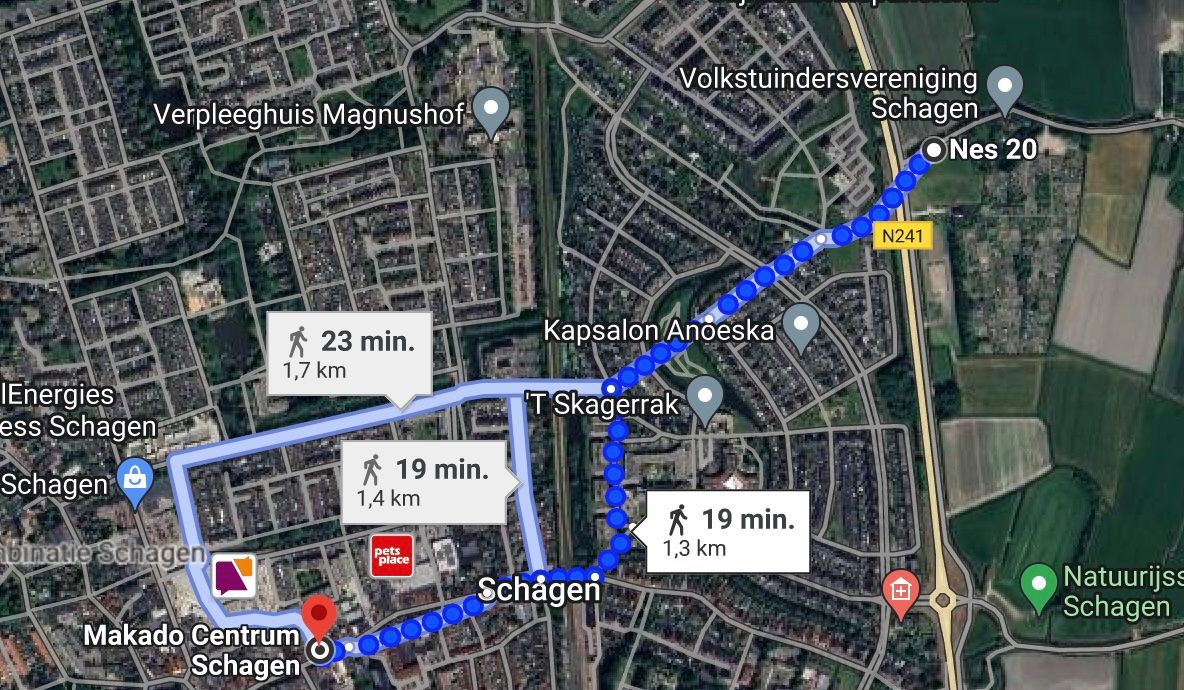 En dan nog iets. Die 250 ericvanderburgers gaan natuurlijk hun enorme zak leefgeld uitgeven in het centrum van Schagen, in het schitterende net verbouwde Makado Centrum. Om daar te komen moeten die 250 ericvanderburgers dan door twee fietstunneltjes onder de N241 wandelen (Nes, Snevert). Zie onder: