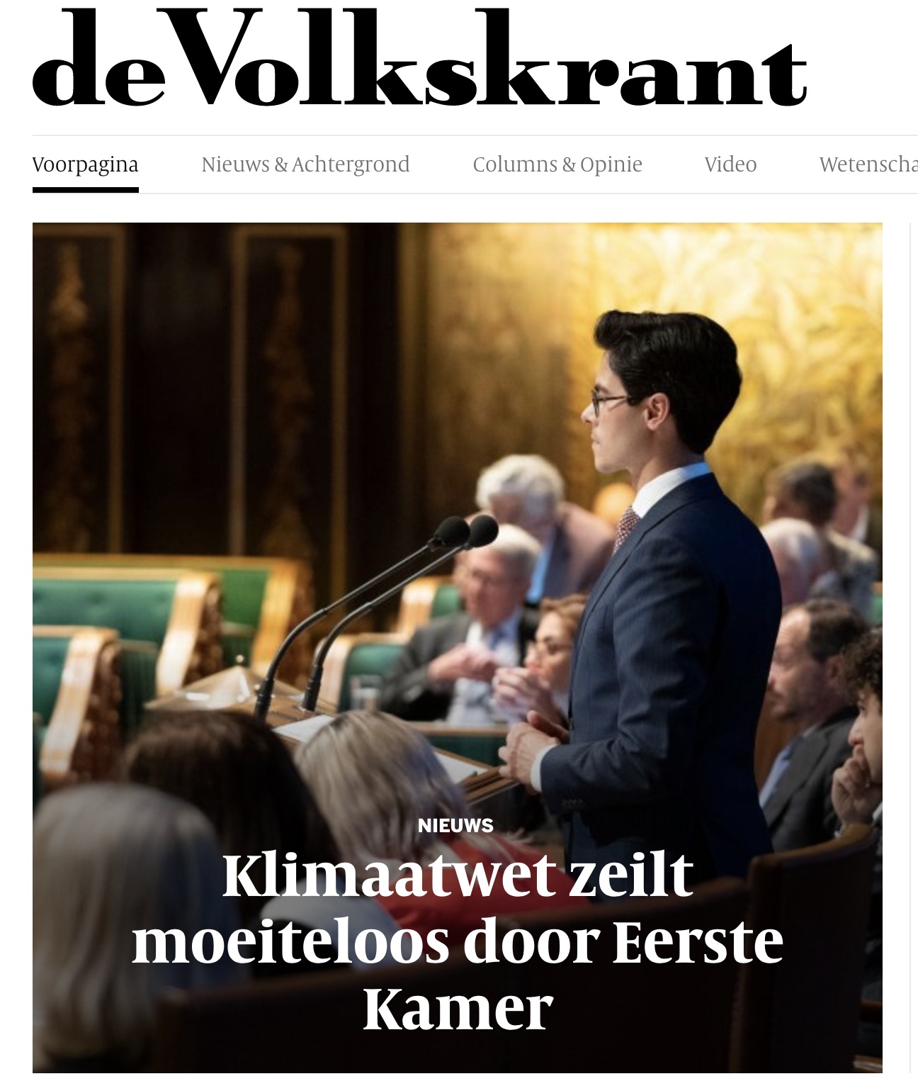 Alstublieft. Van het kartelsysteem, voor u. De Omstreden Klimaatwet. Vlak voor de installatie van de nieuwe senatoren bruut door de Senaat geramd. De Klimaatwet gaat u, de burger, handenvol geld kosten aan gekkigheden en ongein. Ze rammen de Noordzee vol vogelhakselende windmolens (maar owee als u een plastic tasje gebruikt). Ze rammen de provincie vol insecten- en wormenkillende zonneparken (maar owee als u het gras maait). En ze rammen de Klimaatwet door de Senaat. Want dat is wat het is. Drammen drammen drammen = rammen. Bij Forum voor Democratie, dat 12 nieuwe Eerste Kamerleden levert zijn ze natuurlijk piswoest. Bij kartelblad de Volkskrant (72 advertenties voor vliegvakanties per week) vuilspuiten ze dan het woord zeilen. Bah.