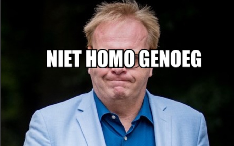 Er zijn blijkbaar 96 organisaties met een mening over de uitspraken van Frits Huffnagel over vluchtelingen en toevallig hebben al die 96 organisaties allemaal dezelfde mening. Namelijk dat Frits Huffnagel, die gisteren al zijn excuses aanbood (Maar is dat genoeg? Natuurlijk niet! Het is nooit genoeg!) omdat hij niet spontaan JIJ BENT WELKOM WELKOM IN MIJN LAND begon te zingen bij de berichten over Afghanen die door Erdogan de Griekse grens over worden gekeild, moet aftreden als voorzitter van Pride Amsterdam. Want als vluchtelingen en/of in elkaar geslagen homo's ergens behoefte aan hebben, dan is het wel aan 'pisswife', 'Queers4Climate', 'Love Muscle (Leeds)', 'Fufu & Dadels Podcast' en 'Kutoer Collective' (wie verzint dit? red.) die de hele dag Radio 1 aan het luisteren zijn om te checken of iemand die zich inzet voor de acceptatie van mensen van alle geaardheden misschien een mening heeft die niet helemaal binnen het strak afgelijnde intersectionele denkraam van de dichtgetikte beroepsslachtoffers past. En nu maar hopen dat nevenfunctienicht Frits Huffnagel niet bukt voor deze geïnstitutionaliseerde idioterie.