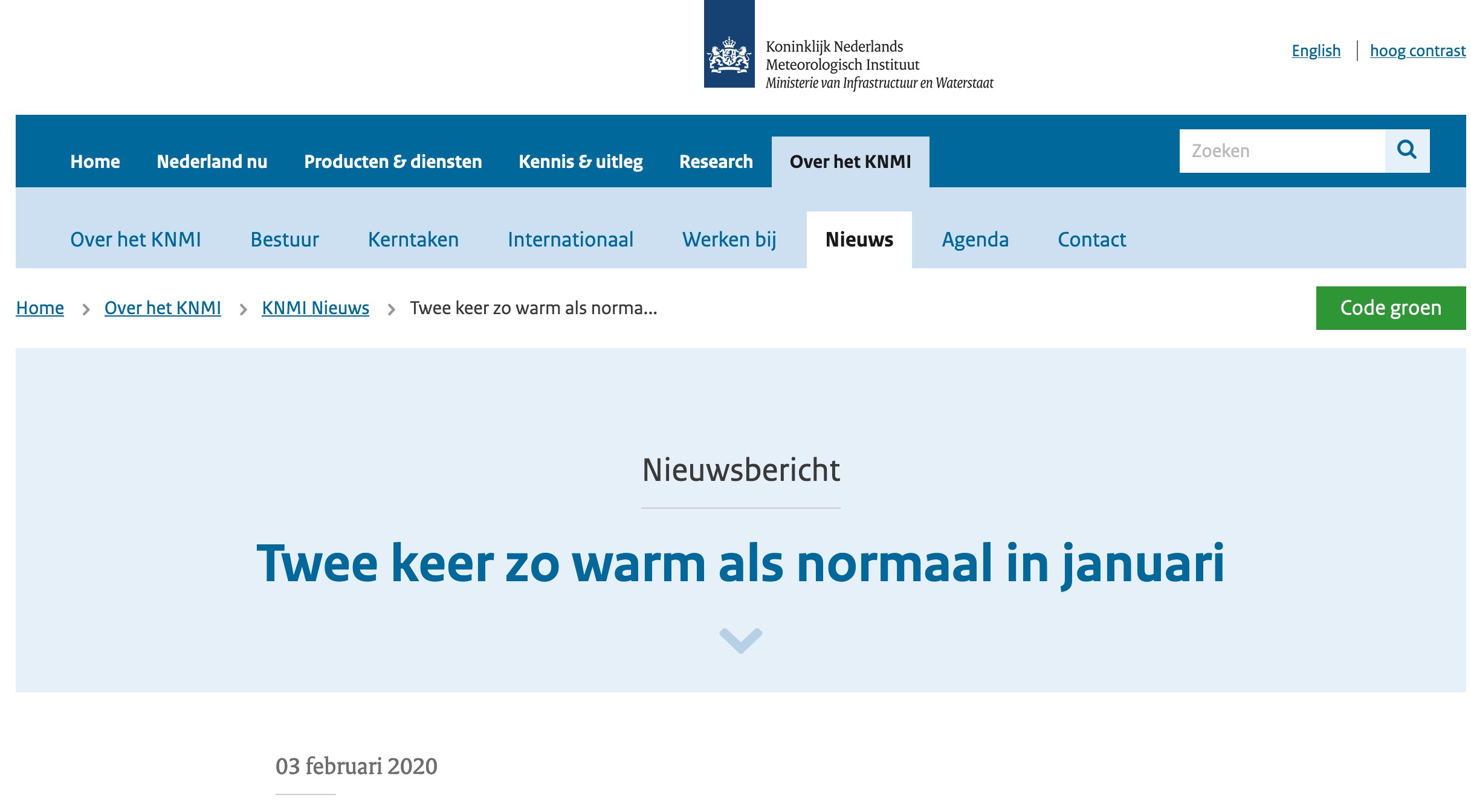 Vandaag: het KNMI (niet een of andere clickbait-nieuwssite, maar het Koninklijk Meteorologisch Instituut zelf op de website knmi.nl) plaatst een persbericht dat het in januari 2020 twee keer zo warm was als normaal. Dit, terwijl 'twee keer zo warm' zeg maar niet echt een wetenschappelijk ding is (nou ja, als je vanaf 0 Kelvin rekent misschien).