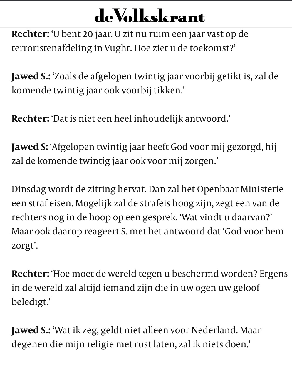 Live. Terrorist Jawed Sultani voor de rechter II