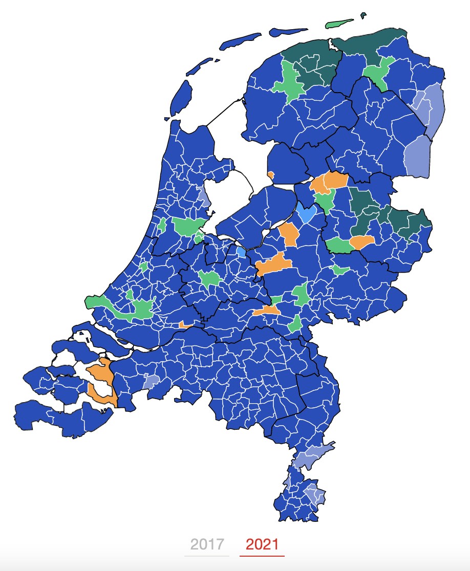 Dit zijn wij. Moedig voorwaarts in het ongekend onrecht der blauwe vvd-zee. Lichtgroen is D66, donkergroen is CDA, oranje is SGP, grijsblauw is PVV (zeg maar, Volendam, Rucphen, Ter Apel en omliggende gemeenten en nog wat enclaves in Limboland), helderblauw is CU. Klik op deze verschrikkelijke NOS KAART voor de totale verwoesting in uw eigen gemeente, en klik vervolgens op "2017" en dan zien we de kleur rood, in OostGroningse commie-bolwerken en rond Boxmeer waar ze ooit het Roemer-effect hadden. Maar goed, dat is nu allemaal foetsie. Reden genoeg om hier in het café lekker blauw te worden, te genieten van Sigrid Kech aan de danspaal, en met opiniepeilers op GROOT SCHERM. Oberrrr!