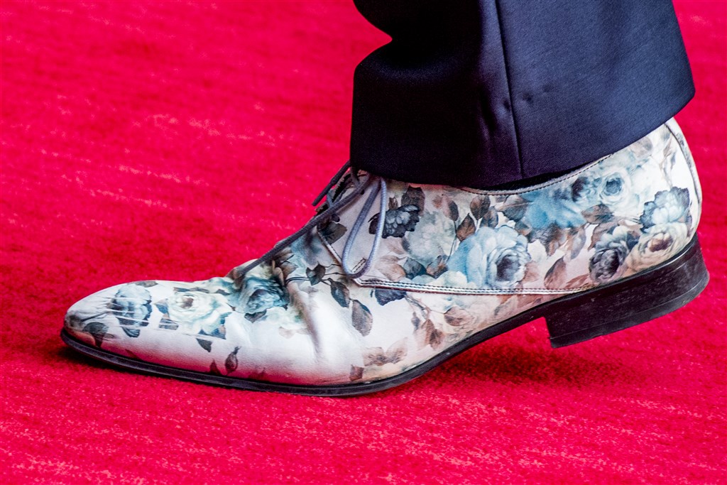 DEN HAAG - Minister Hugo de Jonge van Volksgezondheid, Welzijn en Sport (CDA) arriveert voor de eerste ministerraad van het nieuwe kabinet Rutte III in de Treveszaal op het Binnenhof. De opvallende schoenen van vice premier Hugo de Jonge trekken de aandacht tijdens de bordesscene op Paleis Noordeinde. Dat de kersverse vicepremier Hugo de Jonge fan is van hun schoenen, wisten ze bij Mascolori in Rotterdam al. Maar dat hij niet één maar twee paar van het merk droeg op de dag van zijn beëdiging, wist zelfs oprichter Jochem Grund niet. Voor de bordesfoto koos De Jonge opvallende bloemenschoenen. ,,Ik had nooit gedacht dat een politicus nog eens ons boegbeeld zou worden.'' ROBIN UTRECHT (ANP)